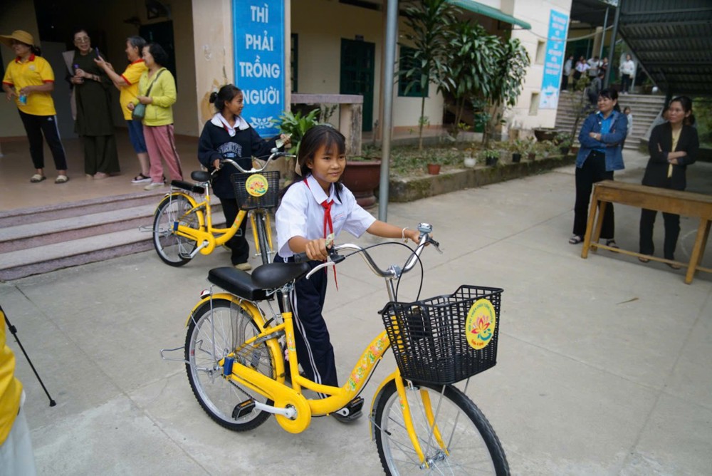 Dịp này, đoàn cũng đã trao 30 chiếc xe đạp, tổng trị giá 60 triệu đồng, đến các em học sinh Trường THCS thị trấn Khánh Vĩnh có hoàn cảnh khó khăn, giúp các em có thêm điều kiện tiếp tục đến trường sau mưa lũ. Tổng kinh phí chương trình tại Khánh Hòa là 962 triệu đồng.