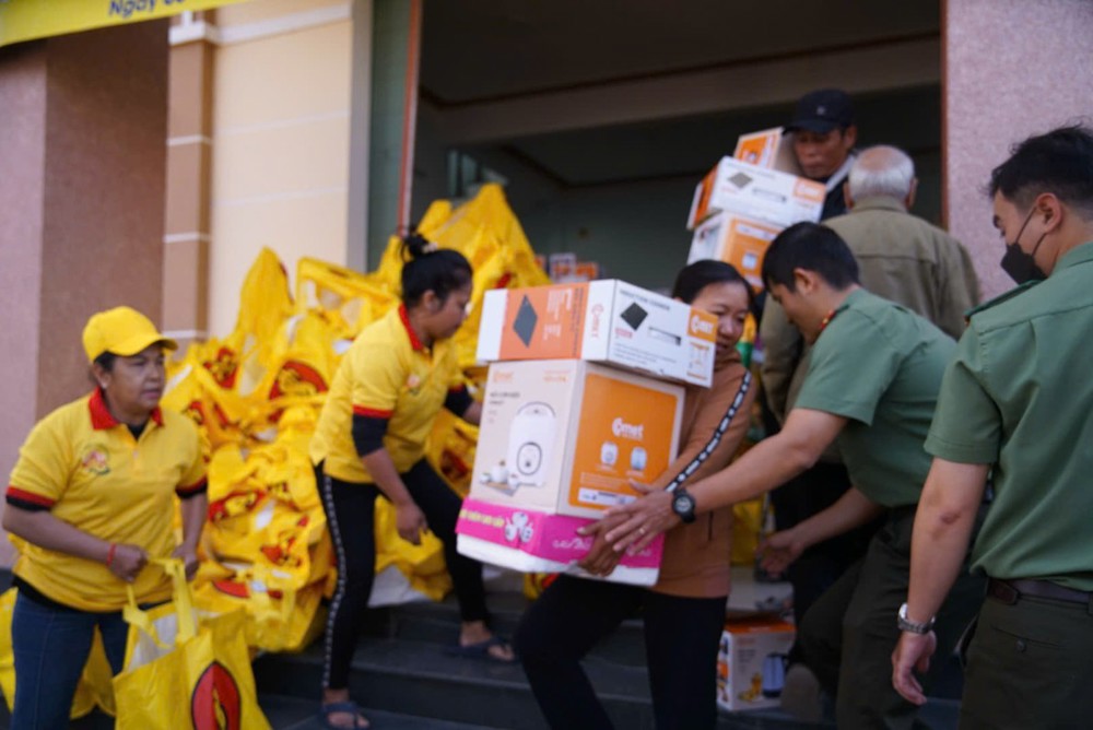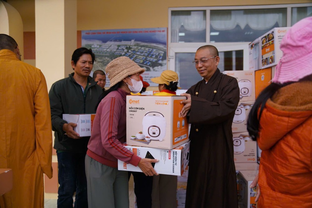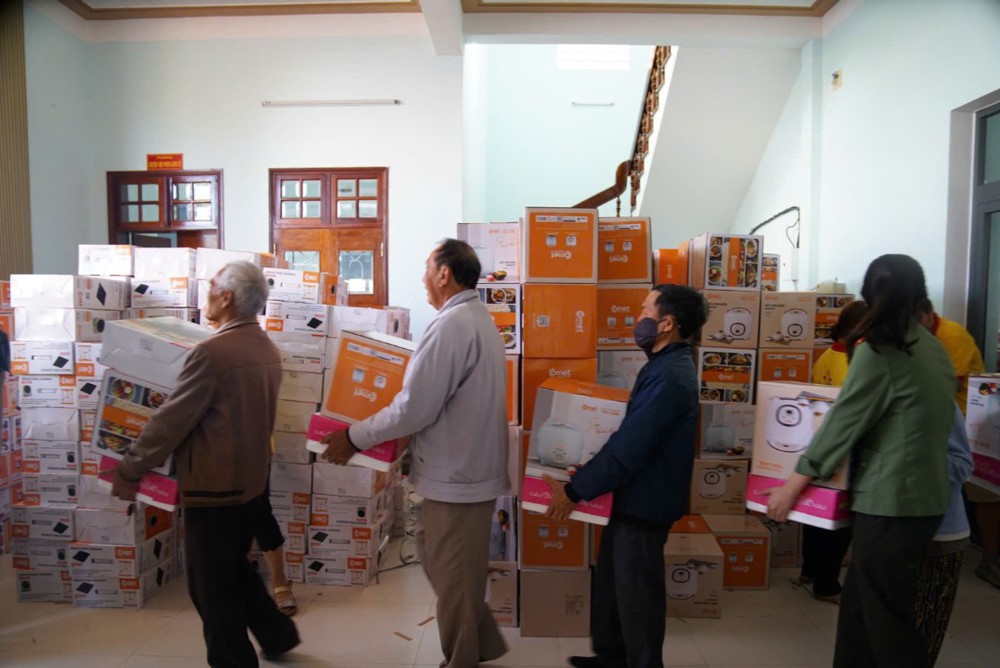 Mỗi phần quà trị giá khoảng 2 triệu đồng, gồm bộ nồi, bếp điện từ, nồi cơm điện, quạt, bình siêu tốc, bộ chén và các nhu yếu phẩm như gạo, hạt nêm… Tổng trị giá quà tặng tại Đắk Lắk ước tính gần 3 tỷ đồng.