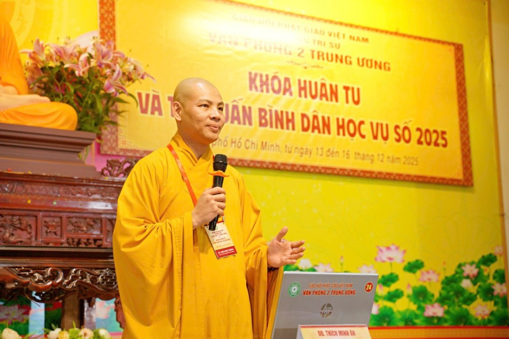 PSO – Trong bối cảnh đất nước đang đẩy mạnh công cuộc chuyển đổi số toàn diện, việc ứng dụng công nghệ thông tin vào công tác quản trị hành chánh là xu thế tất yếu của mọi tổ chức, trong đó có Giáo hội Phật giáo Việt Nam. Trên tinh thần đó, sáng ngày 15/12/2025, tại khóa Huân tu – Bình dân học vụ số do Văn phòng 2 Trung ương tổ chức, Đại đức Thích Minh Ân – Ủy viên Hội đồng Trị sự, Phó Văn phòng 2 Trung ương GHPGVN đã có bài giảng quan trọng với chủ đề: “Ứng dụng chữ ký số và con dấu số trong công tác quản trị hành chánh Giáo hội” đến chư Tôn đức Thư ký – Văn phòng Ban Trị sự các tỉnh, thành khu vực phía Nam.