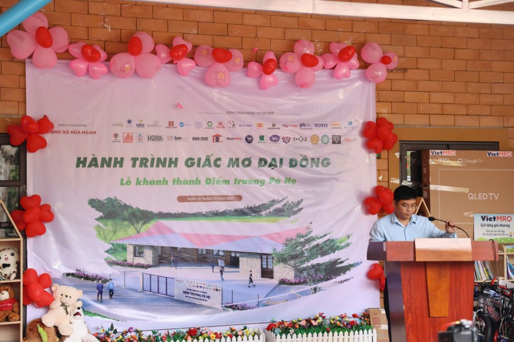 PSO - Ngày 16/3/2026, tại bản Pá Hẹ, xã Núa Ngam, tỉnh Điện Biên, đã diễn ra lễ khánh thành điểm trường Pá Hẹ trong khuôn khổ chương trình “Hành trình giấc mơ Đại Đồng”. Công trình do Ban Trị sự GHPGVN tỉnh Điện Biên phối hợp cùng các đơn vị tài trợ, doanh nghiệp và mạnh thường quân chung tay xây dựng.