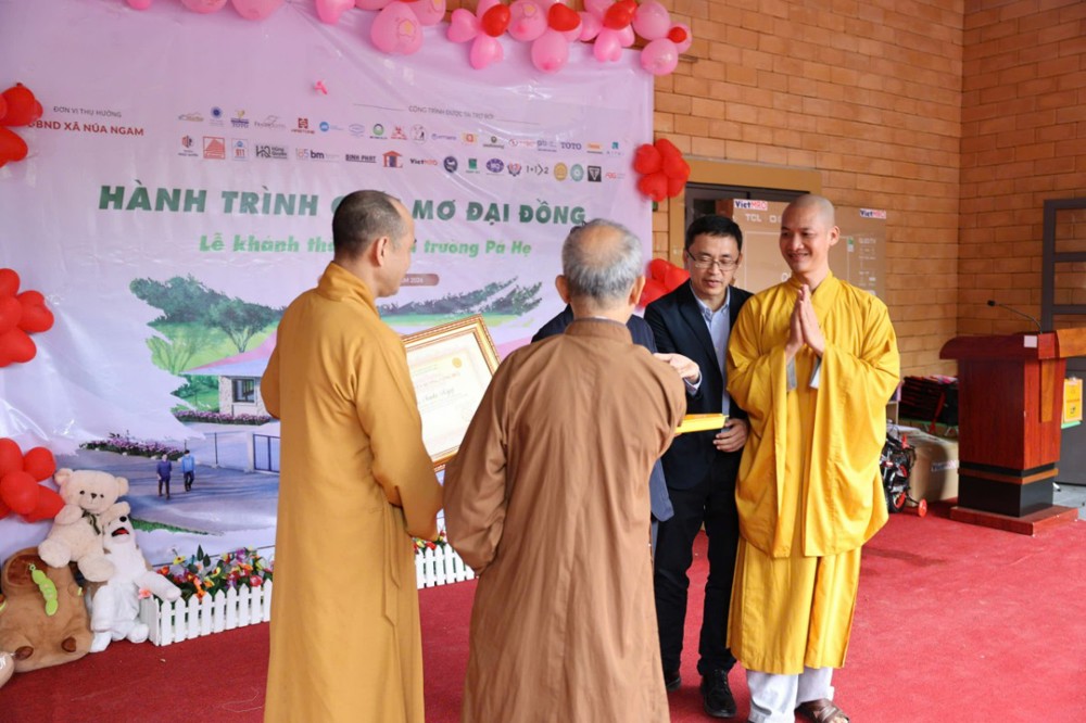 Tại buổi lễ, đại diện lãnh đạo địa phương bày tỏ sự tri ân đối với Ban Trị sự GHPGVN tỉnh Điện Biên cùng các đơn vị tài trợ đã quan tâm, hỗ trợ xây dựng điểm trường, góp phần chăm lo sự nghiệp giáo dục tại địa phương.