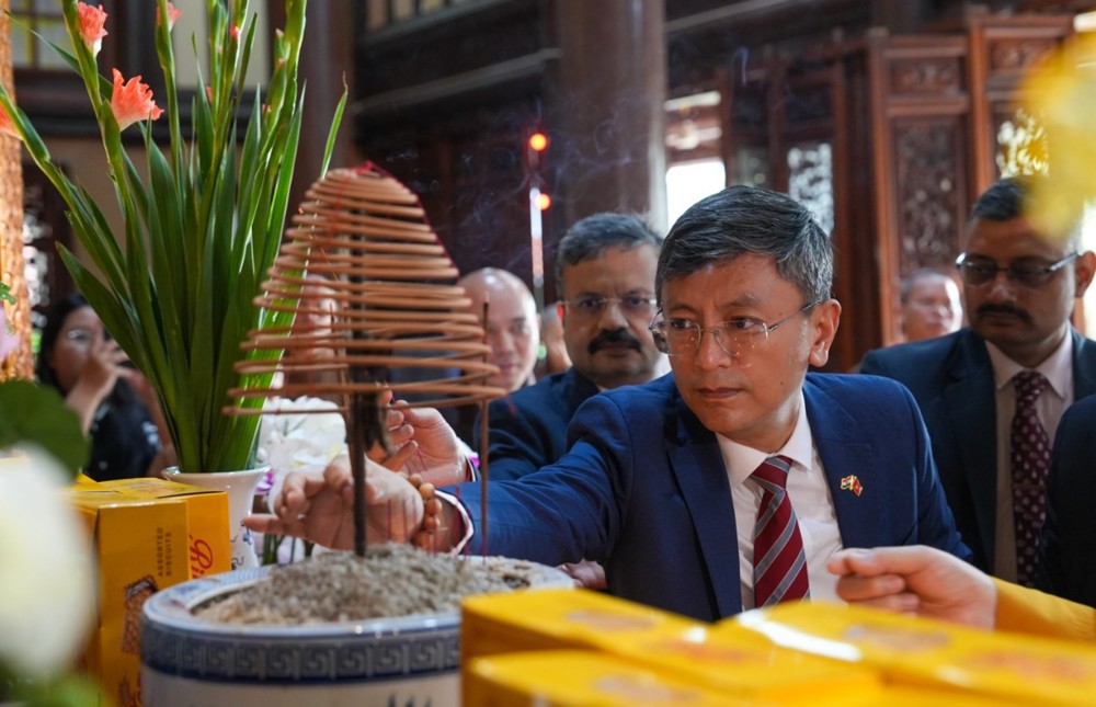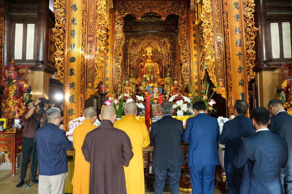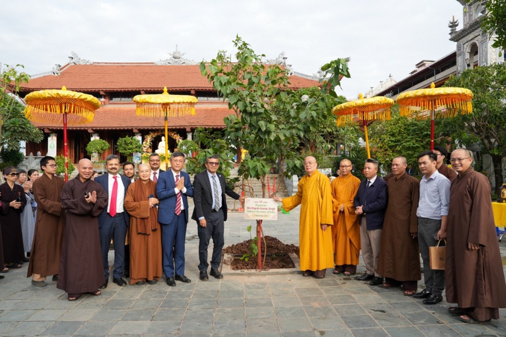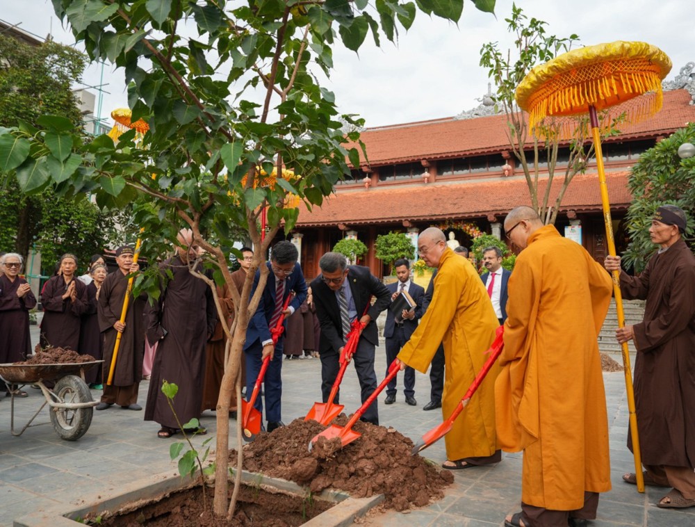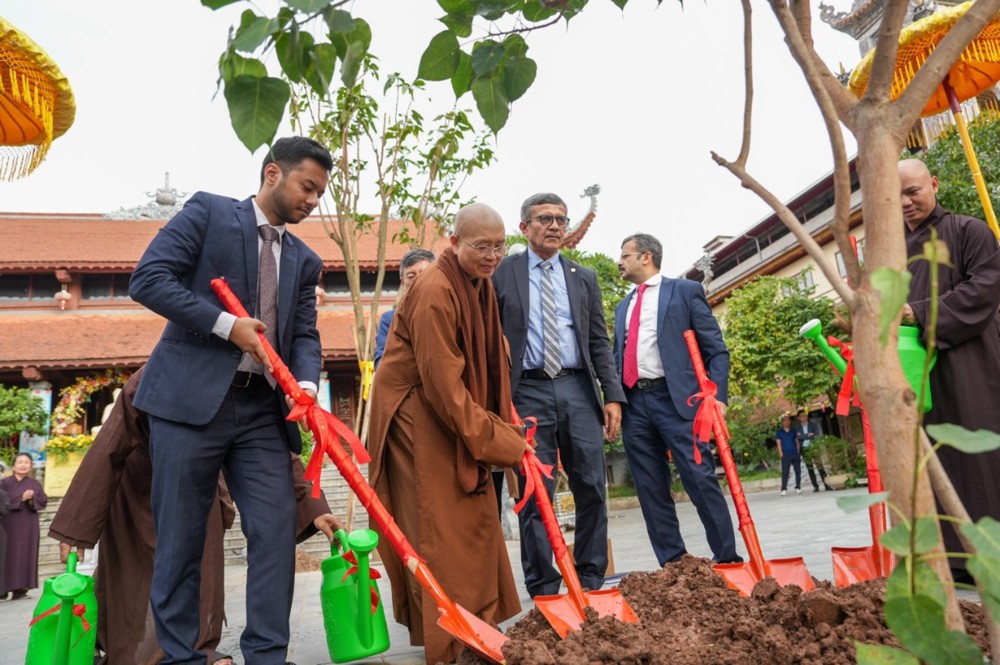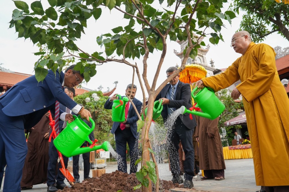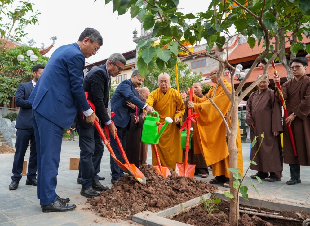 Sau nghi thức dâng hương tại chính điện, hai bên đã cùng nhau trồng cây Bồ Đề trong khuôn viên chùa Pháp Vân, biểu trưng cho tình đoàn kết, hữu nghị và gắn bó tâm linh giữa hai dân tộc, khép lại chuyến thăm đầy ý nghĩa và thành công tốt đẹp.