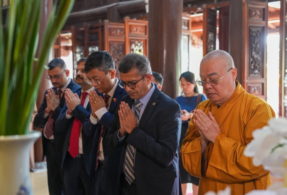 Phát biểu trong chuyến thăm, ngài Rajesh Kumar Singh – Thư ký Quốc phòng Ấn Độ bày tỏ niềm vinh dự và hoan hỷ khi được đến thăm chùa Pháp Vân. Chuyến thăm đến ngôi chùa linh thiêng Pháp Vân là biểu tượng cho tình hữu nghị giữa hai dân tộc. Ông cho biết mình sinh ra gần vùng đất Bodh Gaya, vùng đất linh thiêng nhất của Đức Phật, nên chuyến thăm này mang ý nghĩa thiêng liêng đặc biệt. Ông nhấn mạnh, Phật giáo chính là cầu nối văn minh và văn hóa tâm linh giữa Ấn Độ và Việt Nam. Hiện nay, Ấn Độ đang đẩy mạnh phát triển các trung tâm Phật giáo quanh Bodh Gaya, đồng thời gửi Xá Lợi của Đức Phật đến nhiều quốc gia như minh chứng cho nỗ lực kết nối, lan tỏa ánh sáng từ bi và trí tuệ của Đức Phật trên toàn thế giới.