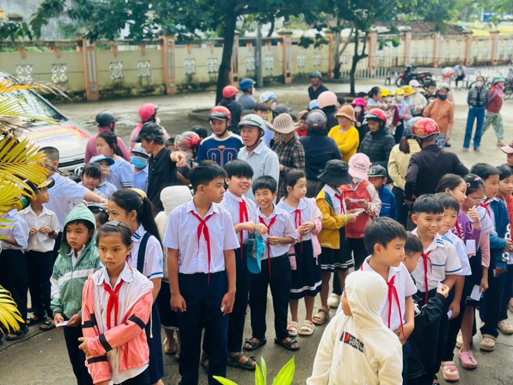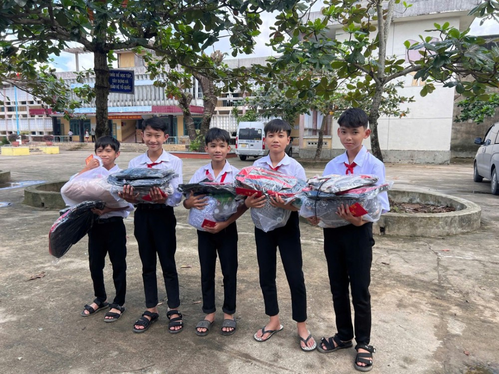 Mỗi suất quà trị giá 450.000 đồng, bao gồm: lì xì 200.000 đồng, ba lô, áo khoác ấm, dụng cụ học tập và bánh, sữa… Ngoài ra, đoàn còn ủng hộ quỹ khuyến học của nhà trường 5.000.000 đồng và lì xì thêm cho 32 em học sinh ngoan, học giỏi.