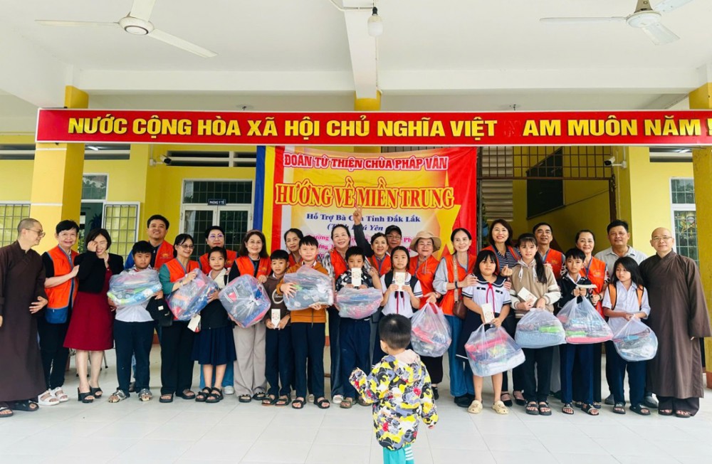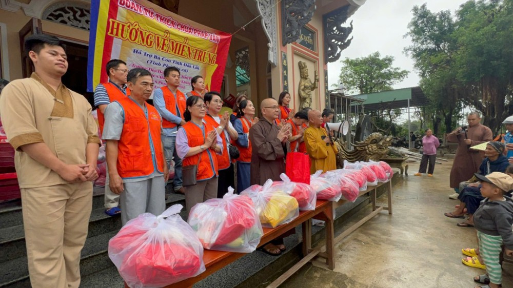 Ngày 12/12/2025, đoàn đến Tổ đình Phi Lai, xã Hòa Thịnh (Phú Yên cũ), đảnh lễ và cúng dường Tam bảo, đồng thời gửi 300 phần quà đến bà con chịu thiệt hại do bão lũ gây ra. Mỗi phần quà trị giá 800.000 đồng, bao gồm: tiền mặt 500.000 đồng, mền mùng và các nhu yếu phẩm.