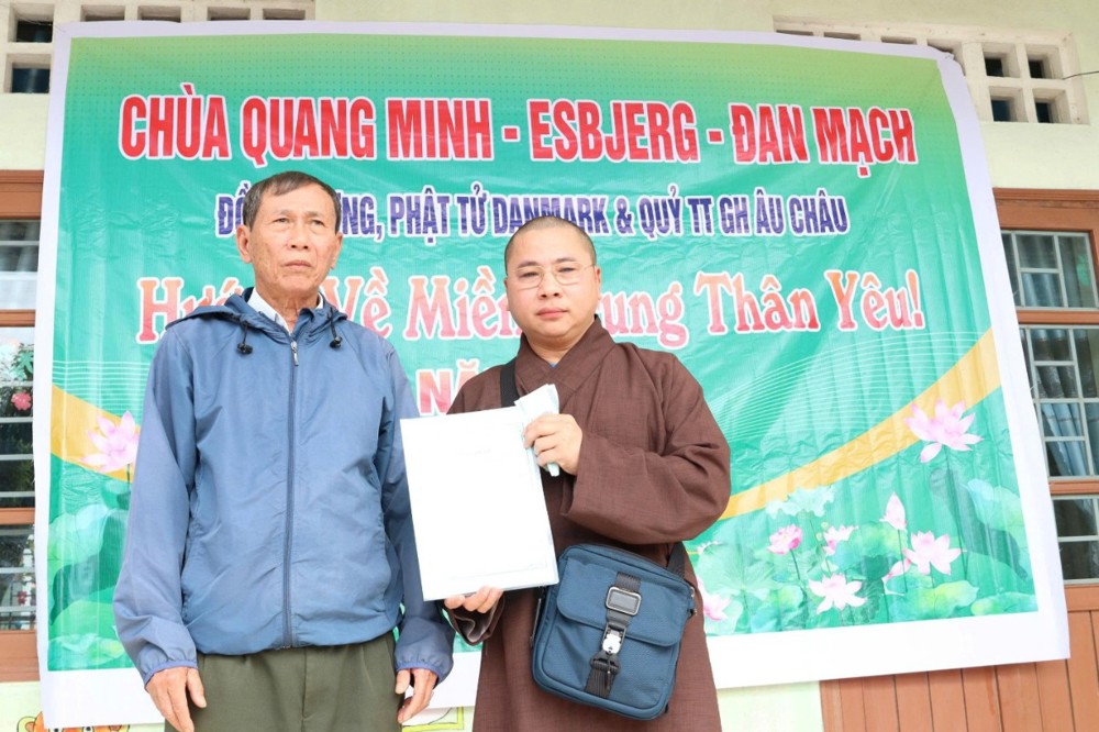 PSO - Ngày 28/12/2025, phái đoàn chùa Quang Minh – Esbjerg, Vương quốc Đan Mạch, dưới sự hướng dẫn của Đại đức Thích Chúc Thành – Trụ trì chùa Minh Quang, đã đại diện Quỹ thiện nguyện GHPGVN tại châu Âu cùng kiều bào Phật tử đang sinh sống tại Đan Mạch tổ chức chuyến thăm và trao quà cứu trợ đến bà con có hoàn cảnh khó khăn sau đợt lũ lụt tại thôn Phú Phong, xã Hòa Thịnh, tỉnh Đắk Lắk (Phú Yên cũ).