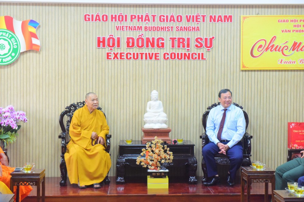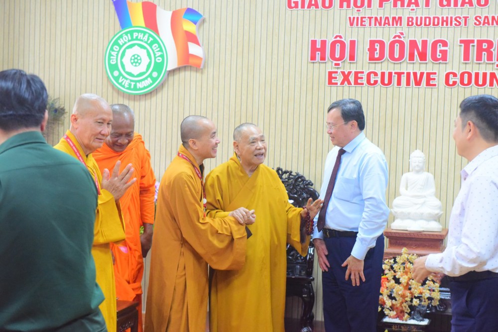 Tại buổi gặp, Phó Bí thư Tỉnh uỷ, Chủ tịch UBND tỉnh Tây Ninh Lê Văn Hẳn thông tin đến chư tôn đức tình hình phát triển kinh tế - xã hội của tỉnh trong năm 2025, qua đó đánh giá cao sự hỗ trợ của các cơ sở tự viện trên địa bàn thông qua sự lãnh đạo của Trung ương Giáo hội trong hỗ trợ an sinh, giúp đỡ người dân khó khăn, yếu thế tại địa phương. Nhân đây, phái đoàn bày tỏ mong muốn tiếp tục nhận được sự quan tâm, lãnh đạo của Trung ương GHPGVN để Phật giáo Tây Ninh có những đóng góp cụ thể, thiết thực, góp phần tăng cường khối đại đoàn kết dân tộc tại địa phương.