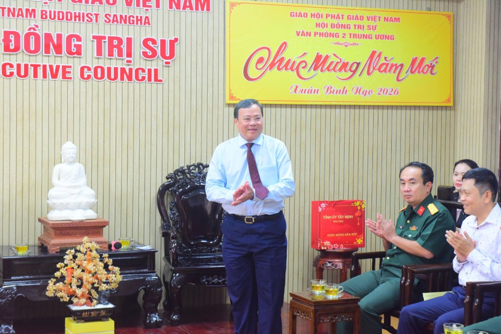 PSO - Sáng ngày 28/01/2026, đoàn Tỉnh ủy - HĐND - UBND tỉnh Tây Ninh đến thăm, chúc Tết Trung ương GHPGVN tại trụ sở Văn phòng 2 Trung ương Giáo hội.