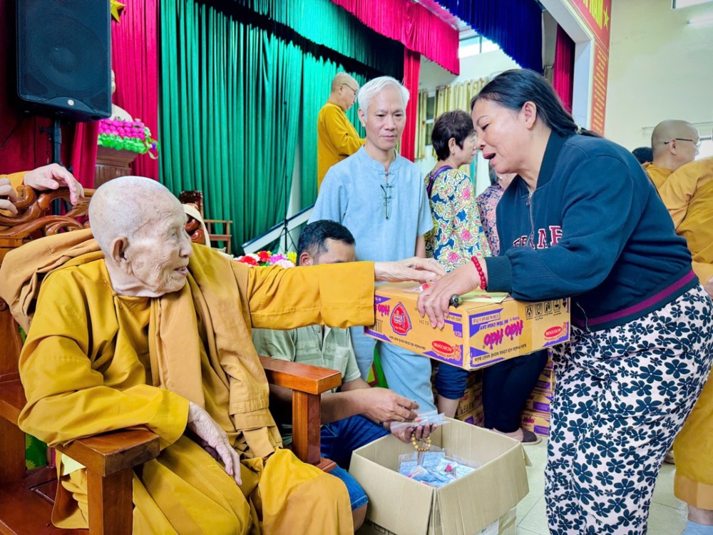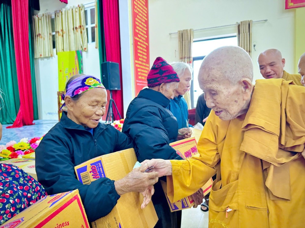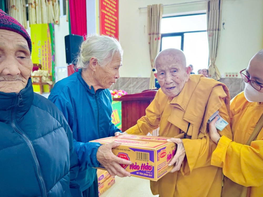 Dẫu đã 98 tuổi, Ni trưởng Chiêu Liên vẫn với tấm lòng từ bi vô lượng, không quản tuổi cao sức yếu, phát tâm hướng dẫn Ni chúng khởi hành chuyến xe xuyên đêm, mang theo những phần quà đượm nghĩa tình của chư Tôn đức Ni và quý Phật tử trong – ngoài nước gửi đến đồng bào vùng lũ.