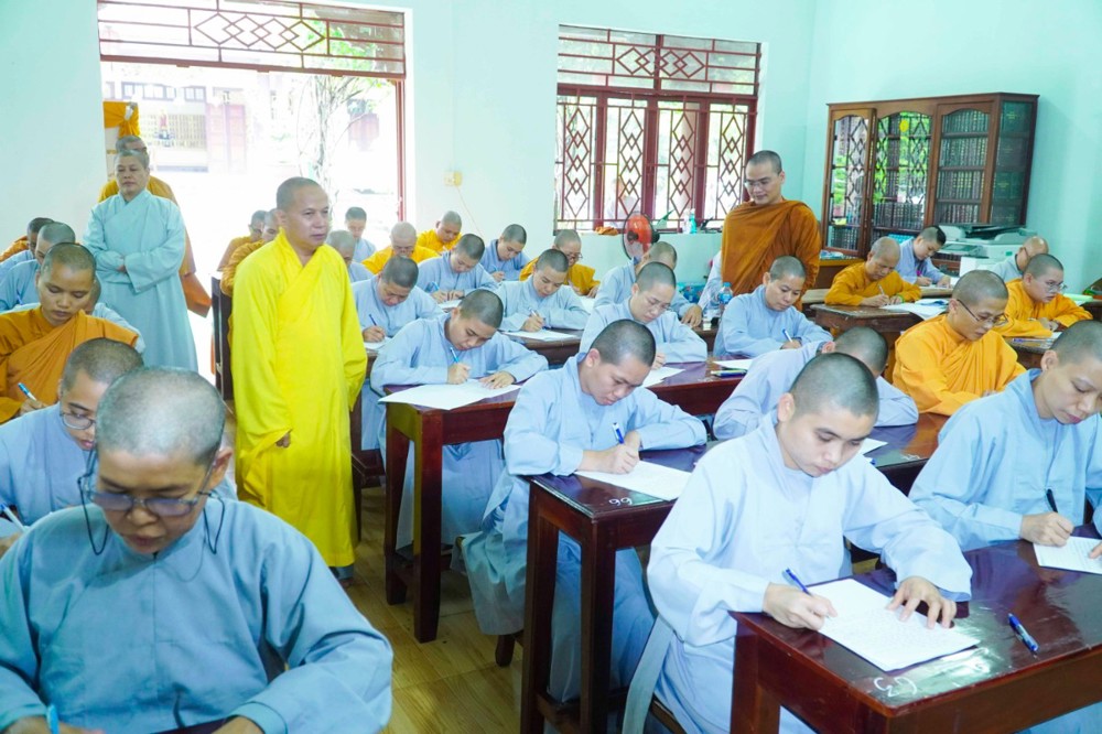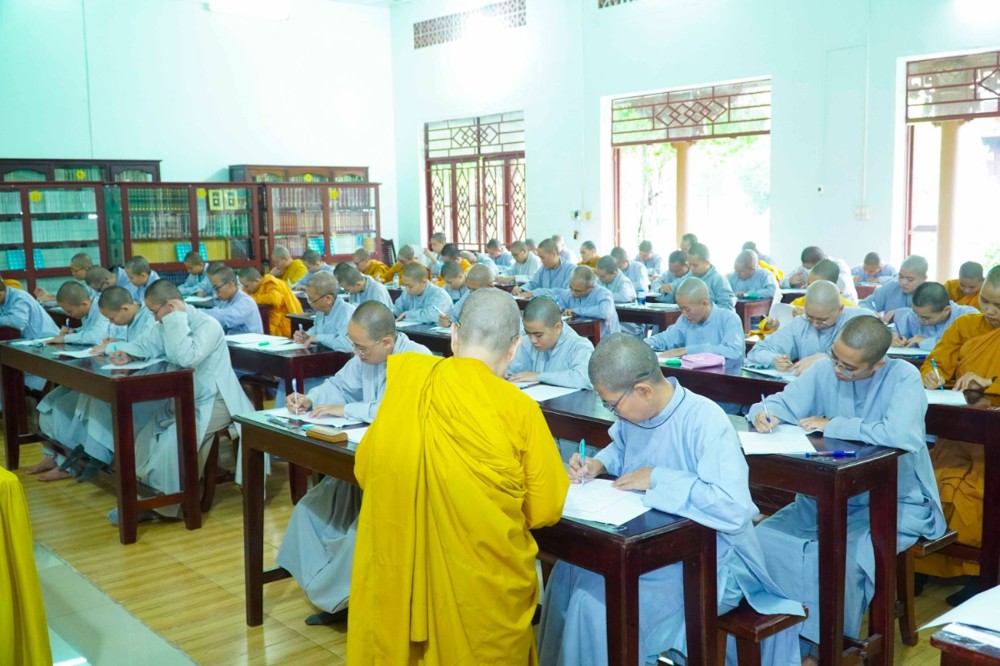Sau lời Đạo từ của Hòa thượng Chứng minh, Tăng Ni sinh đã bước vào môn thi đầu tiên là Phật Pháp Căn Bản – thời gian: 90 phút và môn thi: Việt Văn – 90 phút.