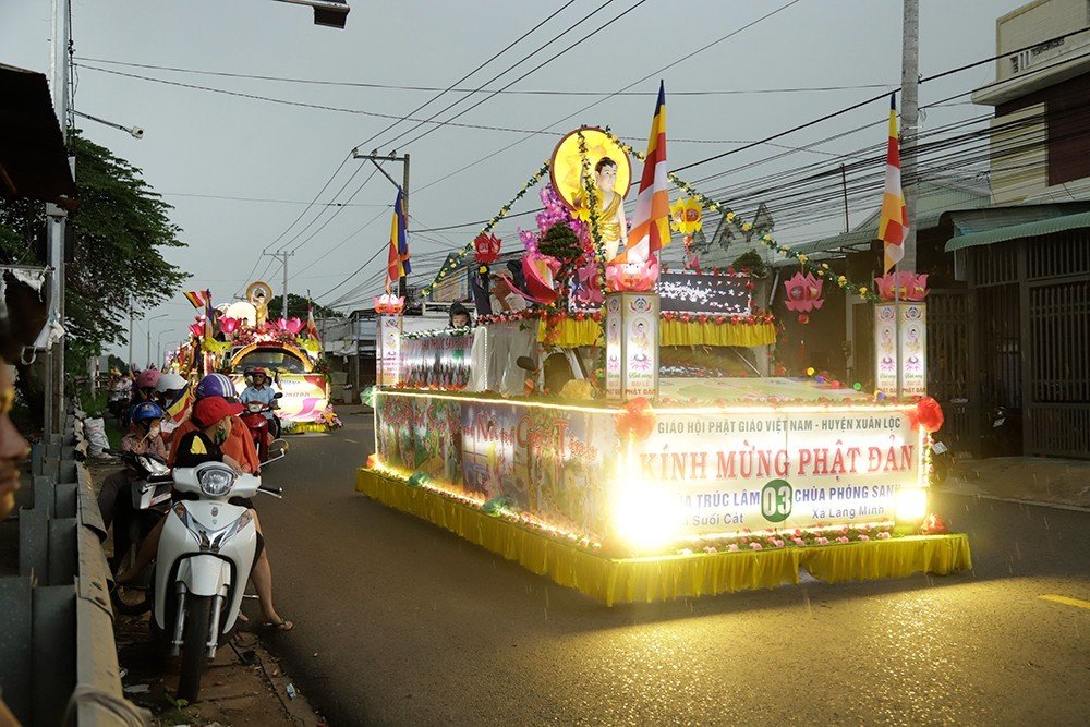 Được biết năm nay, Ban Trị sự và các tự viện trong huyện trang nghiêm thiết trí 25 chiếc xe hoa lớn nhỏ với nhiều chủ đề khác nhau, nội dung phong phú. Được sự hỗ trợ của Chính quyền và các cơ quan của huyện Xuân Lộc, Công an huyện Xuân Lộc đã cử lực lượng Cảnh sát giao thông huyện tham gia hộ tống, bảo vệ an ninh trật tự cho đoàn diễu hành xe hoa của Phật giáo huyện trong suốt 02 ngày diễu hành.