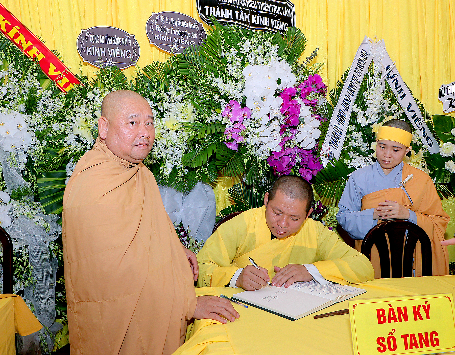 Với tấm chân tình cao cả ấy, HT. Thích Huệ Thông và chư Tôn đức đã ghi sổ tang lưu niệm, phân ưu cùng Ban Trị sự Giáo hội Phật giáo Việt Nam tỉnh Đồng Nai, Tông phong Liên Tông Tịnh độ Non bồng và môn đồ pháp quyến, bà con Phật tử tại Quan Âm Tu viện vừa mất đi một bậc Tông trưởng uy đức, một vị Thầy khả kính, vị Giáo phẩm đạo hạnh sáng ngời.