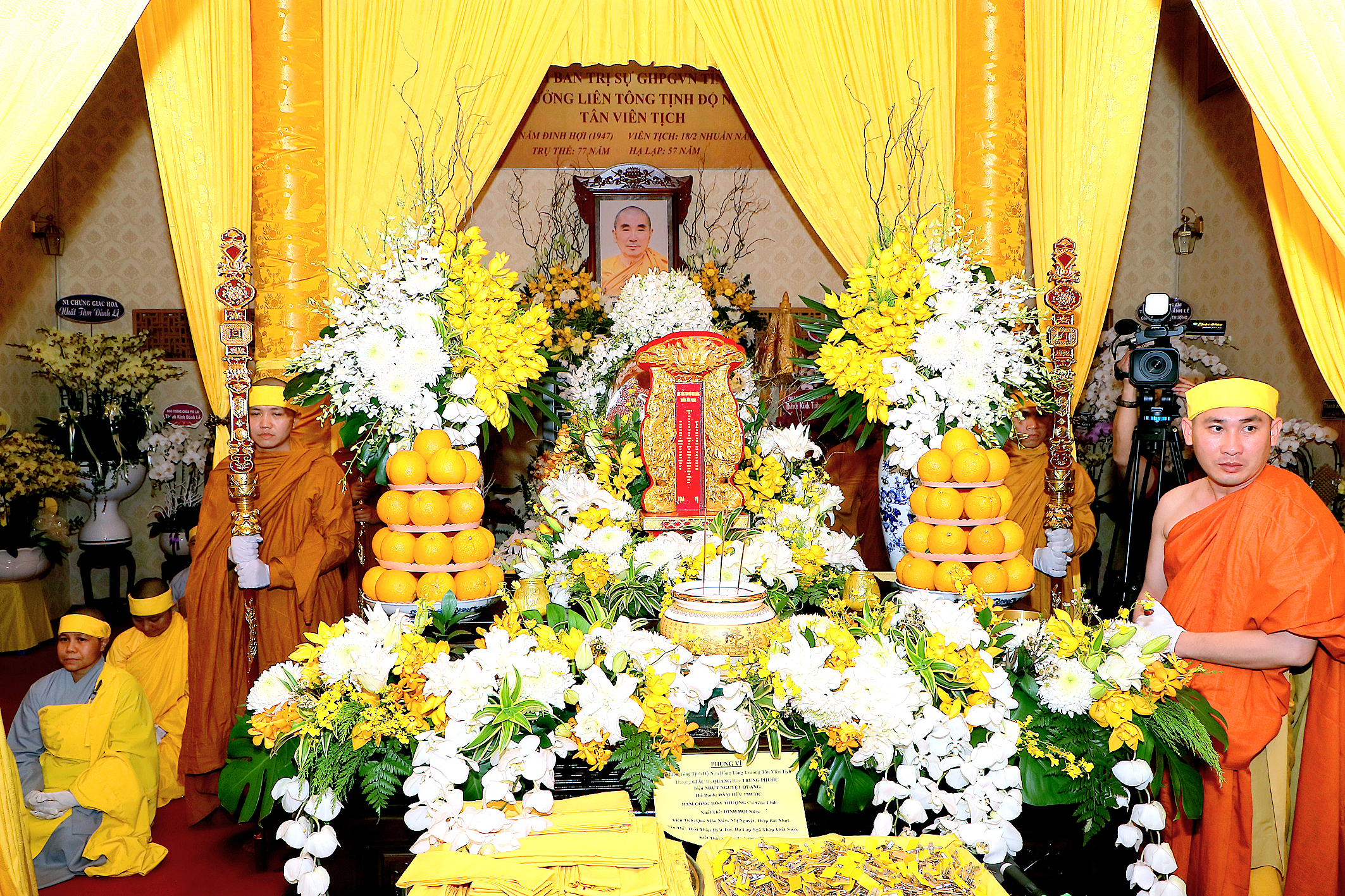 Lễ truy niệm được cử hành vào lúc 07 giờ 00, ngày 14/4/2023 (nhằm ngày 24 tháng 02 nhuần năm Quý Mão), sau đó phụng tống kim quan Trưởng lão Hòa thượng nhập bảo tháp tại khuôn viên Tổ đình Quan Âm Tu viện.