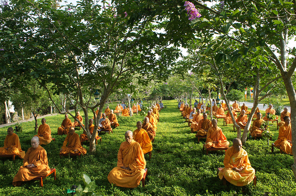 Chư hành giả tỉnh tọa trong vườn thiền