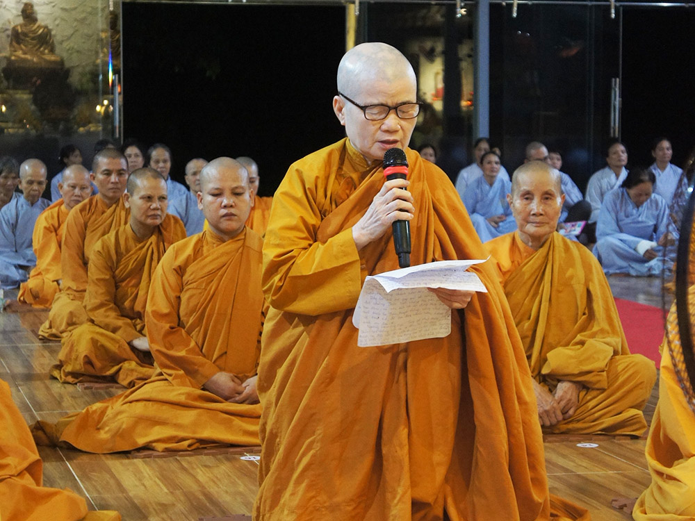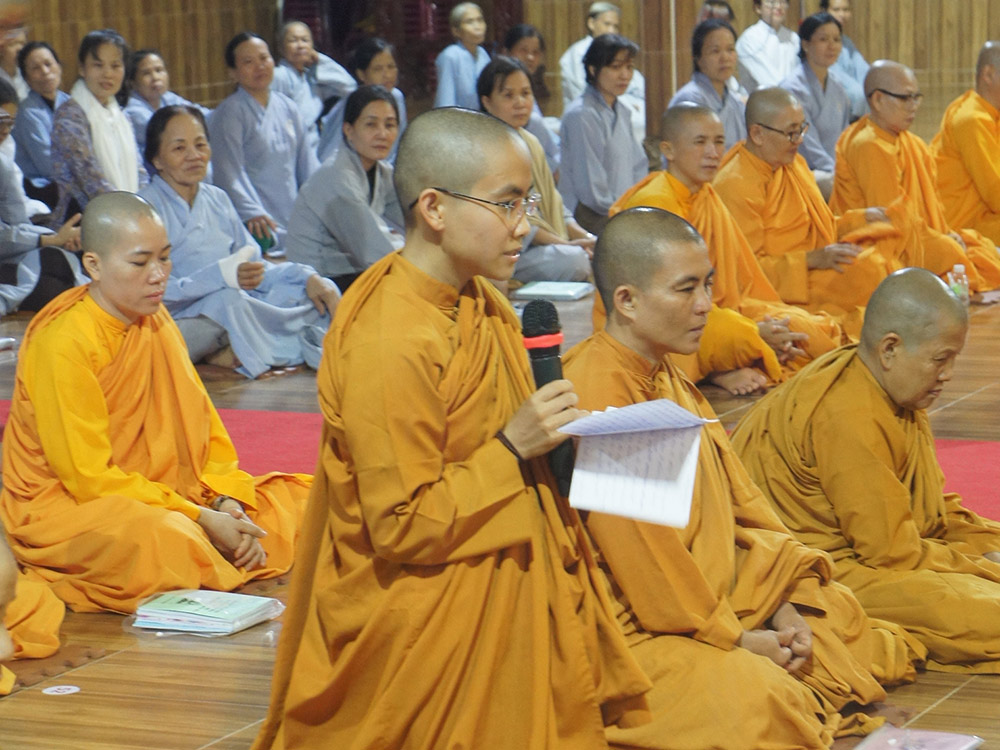 Tiếp đó NS. Hằng Liên - Trụ trì chùa Hồng Trung Sơn, nơi đăng cai tổ chức khóa tu, dâng lời cảm niệm công ơn quý Ni trưởng Giáo phẩm và quý Ni sư trong BTC đã dày công nỗ lực chỉ dạy, đồng thời cũng nhận những thiếu sót mặc dù đã nỗ lực hết sức trong công tác tổ chức và phục vụ.