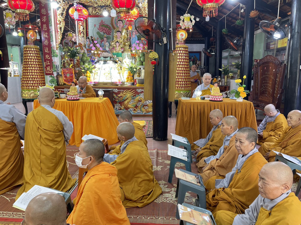 Chứng minh và khai thị giới Kinh có Ni sư Thích Nữ Huệ Tâm - Cố vấn Phân Ban Ni giới tỉnh, Phó thiền chủ, Hoá chủ trường hạ; Ni sư Thích Nữ Huệ Hiếu, UVTT Ban Trị sự , UVTT Ban Hoằng pháp GHPGVN tỉnh, Phó hoá chủ, Bố tát sư hạ trường, Ban Chức sự và hơn 50 hành giả an cư tham dự.