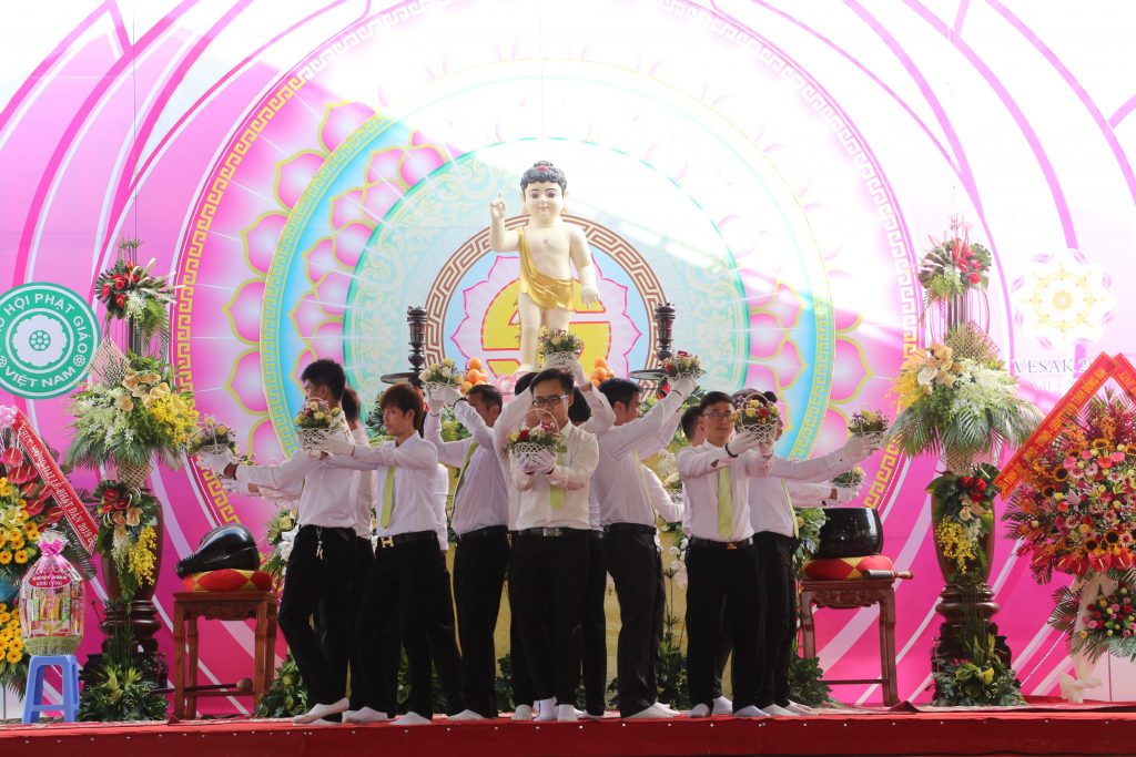Sau đó, là phần cử hành nghi lễ cúng dường Phật đản, 3 hồi chuông trống được cử lên, chư tôn hòa thượng chứng minh niêm hương và toàn thể hội chúng đồng chắp tay trang nghiêm hướng về Đức từ phụ Thế tôn tưởng nhớ về cuộc đời khai sáng đạo Phật của Ngài, một bậc đạo sư của trời và người, một vì sao sáng cho toàn nhân loại.