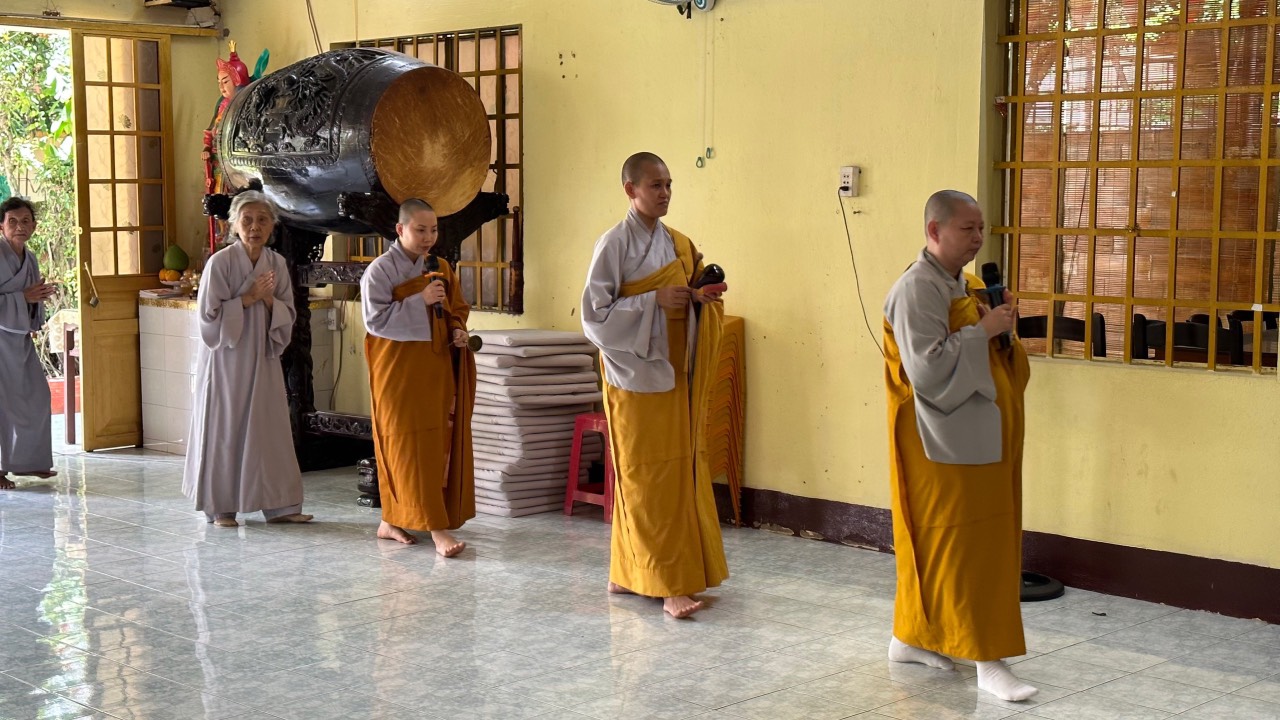 Khóa tu được bắt đầu vào đúng 07h30, truyền giới Bát Quan trai, trì tụng Ngũ Bộ Chú, thính pháp, thọ trai trong chánh niệm, kinh hành niệm Phật, đảnh lễ thù ân…