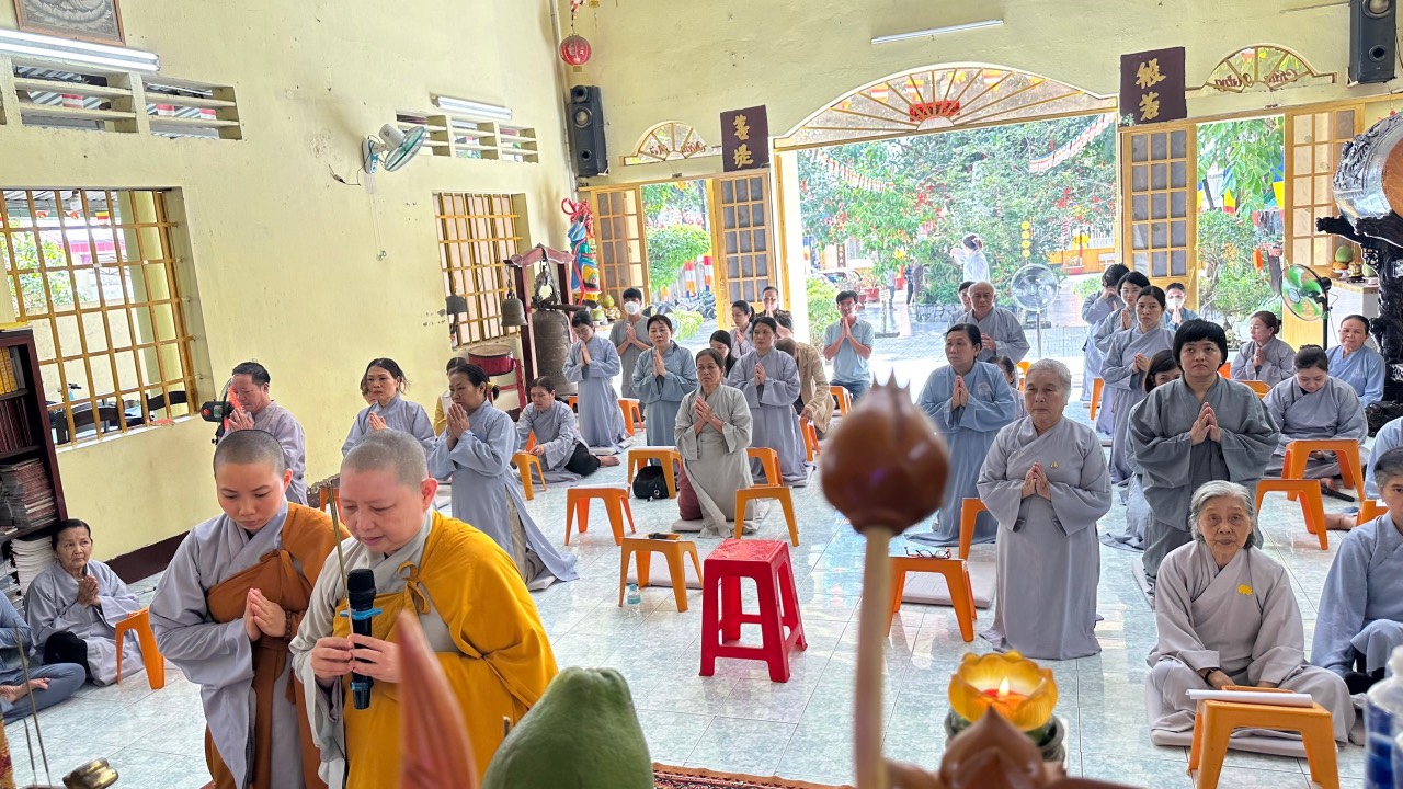 PSO - Sáng ngày 09/07/2023 (nhằm ngày 22/05/Quý Mão), chùa Long Hoa (thị trấn Hiệp Phước, huyện Nhơn Trạch, tỉnh Đồng Nai) đã tổ chức khóa tu Bát Quan trai lần thứ nhất, dưới sự hướng dẫn của Ni sư trụ trì Thích Nữ Huệ Hiếu, chư Ni chúng và hơn 60 Phật tử tham dự.