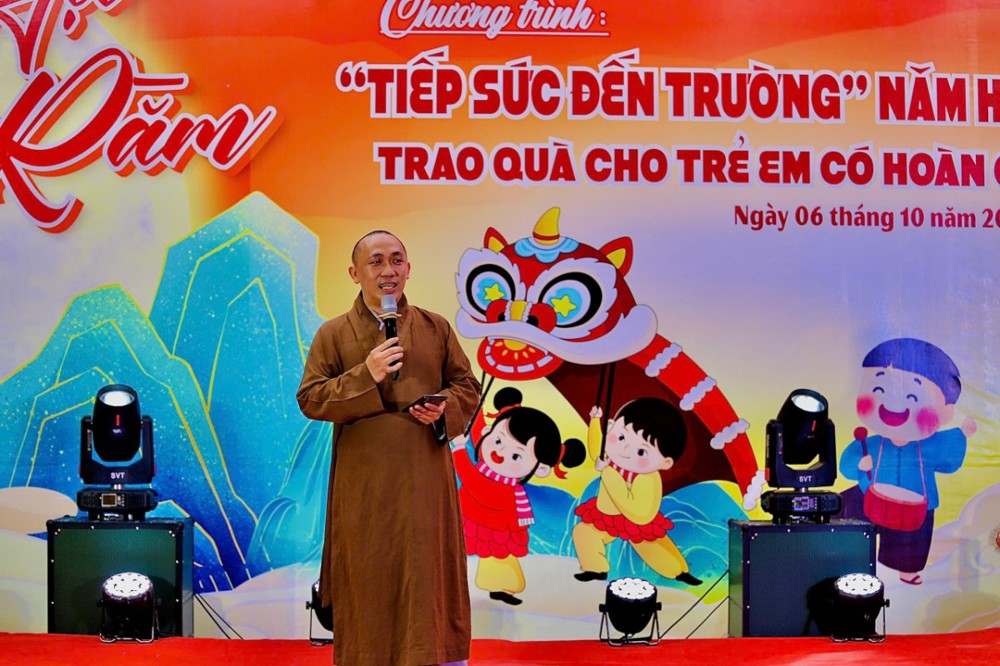 Phật tử Diệu Phước, đại diện cho các nhà tài trợ, đã gửi lời chúc đến các em thiếu nhi nhân dịp Tết Trung thu, mong các em bước vào năm học mới với nhiều thành công trong học tập và có một đêm hội thật vui tươi, đầm ấm, tràn đầy niềm vui và tiếng cười.