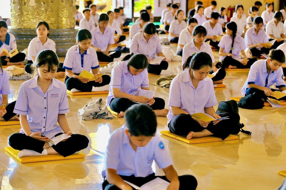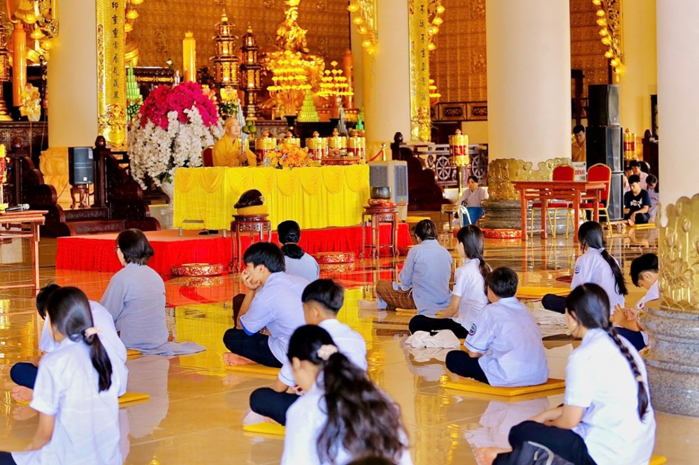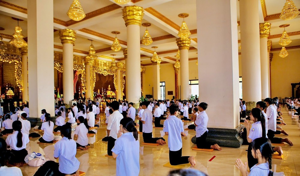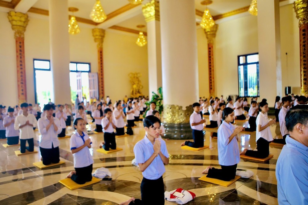 PSO - Sáng ngày 26/10/2025 (nhằm ngày mồng 06/9/năm Ất Tỵ), tại chùa Phật Quốc Vạn Thành, khu phố Xa Cam, phường Bình Long, tỉnh Đồng Nai, Thượng tọa Thích Nguyên Hiếu – Trụ trì chùa, đã trang nghiêm tổ chức khóa tu Bát Quan trai dành cho 500 thanh thiếu niên, học sinh và Phật tử địa phương.