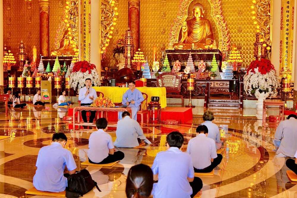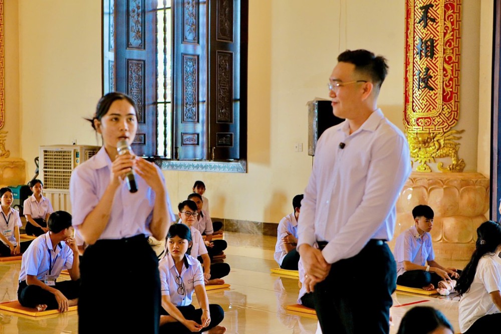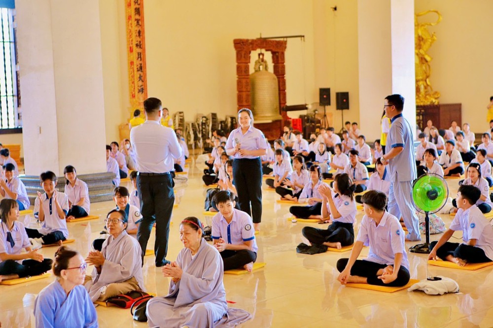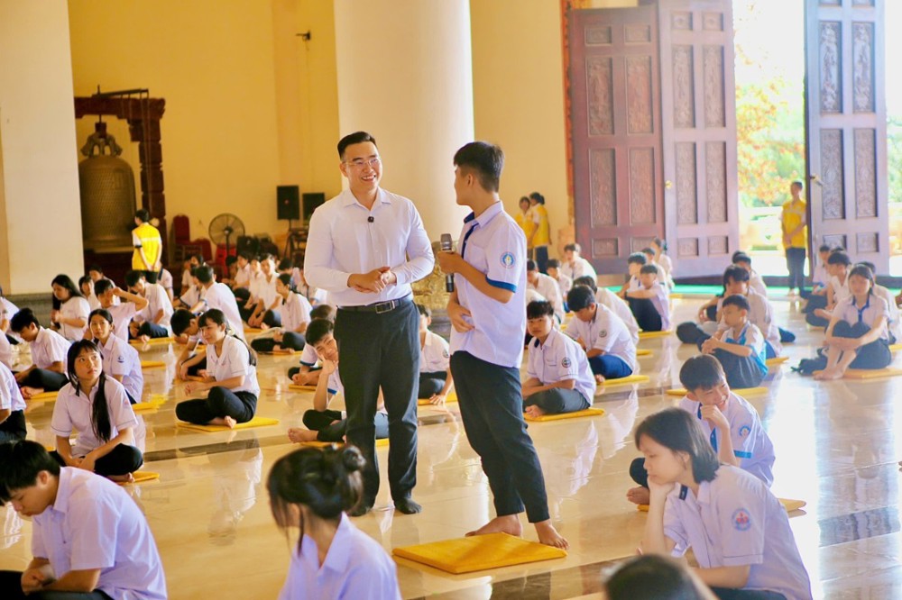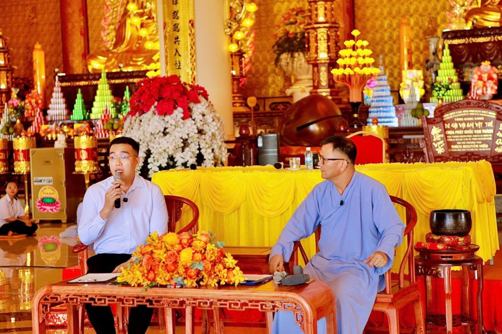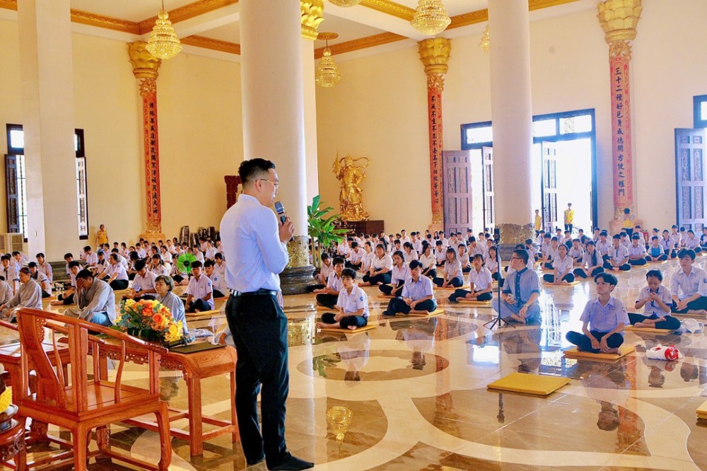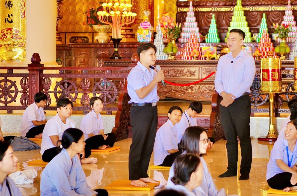 Sau buổi truyền trao giới pháp đặc biệt chương trình đem lại Phật pháp đạo và đời trong khoá tu học cho em thanh thiếu niên học sinh cũng nhân dịp này có hai anh Phật tử chia sẻ vấn đáp trả lời từng câu hỏi của em thanh thiếu niên học sinh : Phật tử Đỗ Bá Minh (Pháp danh: Vạn Phước ) là một người doanh nhân cty khu KCN - Phật tử Trần Vương Quốc Anh (Pháp danh: Vạn Đại) - Công ty Hải Vương quản lý khách sạn An Lộc, thành viên của Hiệp hội du lịch tỉnh Đồng Nai là người dẫn chương trình Buổi toạ đàm chia sẻ với chủ đề “ Đề tài tọa đàm: "Thấu hiểu để yêu thương - một món quà vô giá - cho đi và nhận lại “. Với tinh thần cởi mở và gần gũi, đã chia sẻ nhiều bài học thực tế thiết thực hơn từ đời sống tu học và kinh nghiệm thương trường, đồng thời xoay quanh định hướng nghề nghiệp, tâm lý tuổi trẻ và kỹ năng ứng xử trong xã hội. Từ xưa đến nay, nền tảng giáo dục Việt Nam luôn đặt trọng tâm vào hai yếu tố song hành: Đạo đức và Kiến thức. Nếu như trí tuệ là đôi tay thì đạo đức chính là trái tim của con người. Tuy nhiên, cùng với sự phát triển mạnh mẽ của khoa học công nghệ, xã hội. Chính vì vậy, để nhìn nhận đúng thực trạng xã hội hiện nay, mỗi người cần hiểu rõ ý nghĩa và vai trò thiết yếu của việc rèn luyện lối sống đạo đức. Chỉ khi tu dưỡng đạo đức, con người mới có thể trở thành một công dân hữu ích cho gia đình và xã hội.