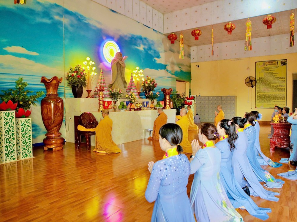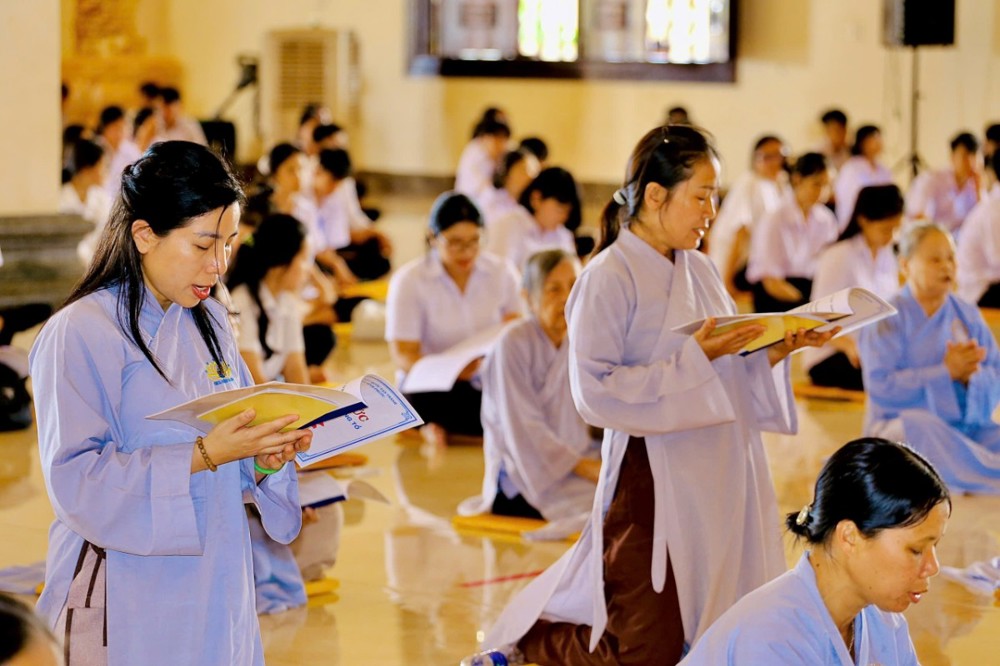 Sau khi lắng nghe thời pháp thoại, đại chúng tiếp tục trang nghiêm tụng Kinh Phước Đức và Kinh Cúng Ngọ buổi trưa. Trong không khí thanh tịnh và hòa hợp, toàn thể hành giả đồng nhất tâm tụng kinh hồi hướng công đức. Khóa tu khép lại thập phần viên mãn, mỗi người ra về mang theo niềm hoan hỷ và năng lượng tỉnh thức, tiếp tục ứng dụng Phật pháp vào đời sống hằng ngày để chuyển hóa bản thân và góp phần xây dựng xã hội tốt đẹp hơn.
