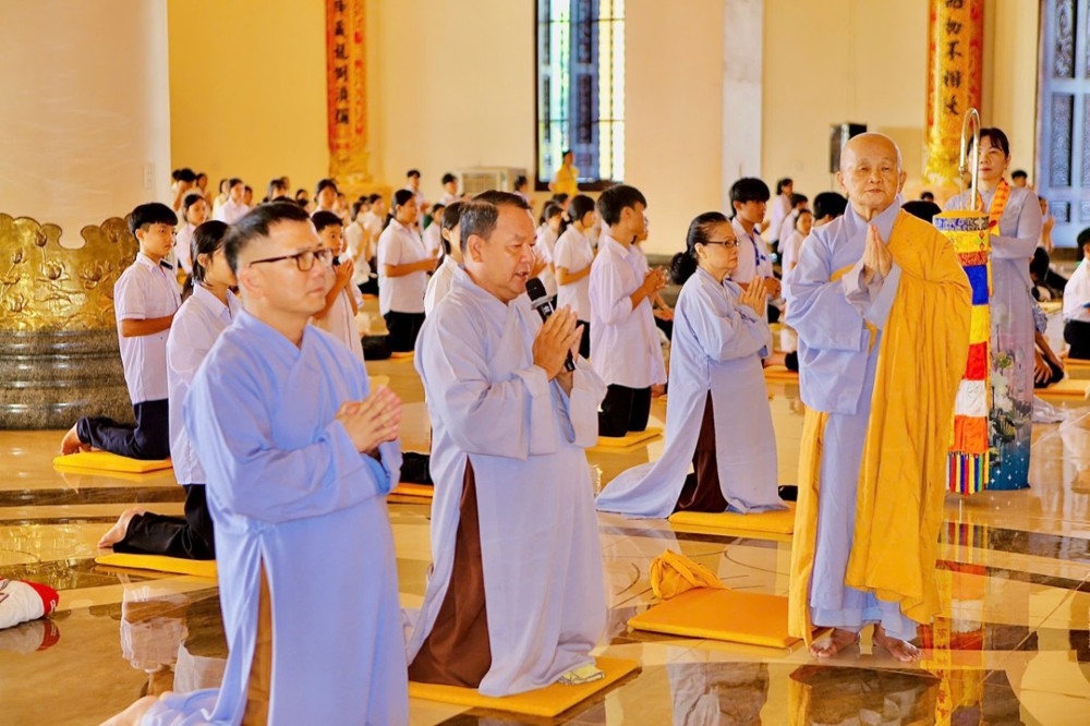 Tại buổi lễ, Thượng tọa Thích Nguyên Hiếu cùng chư Tôn đức Tăng đã niêm hương bạch Phật lại Tổ và đạo tràng Phật tử, sau lại Tổ cung nghinh chư Tôn đức Tăng đến chánh điện Tam bảo Từ Tôn niệm hương - truyền trao và khai thị giới pháp đến 500 giới tử là các em thanh thiếu niên, học sinh và Phật tử.