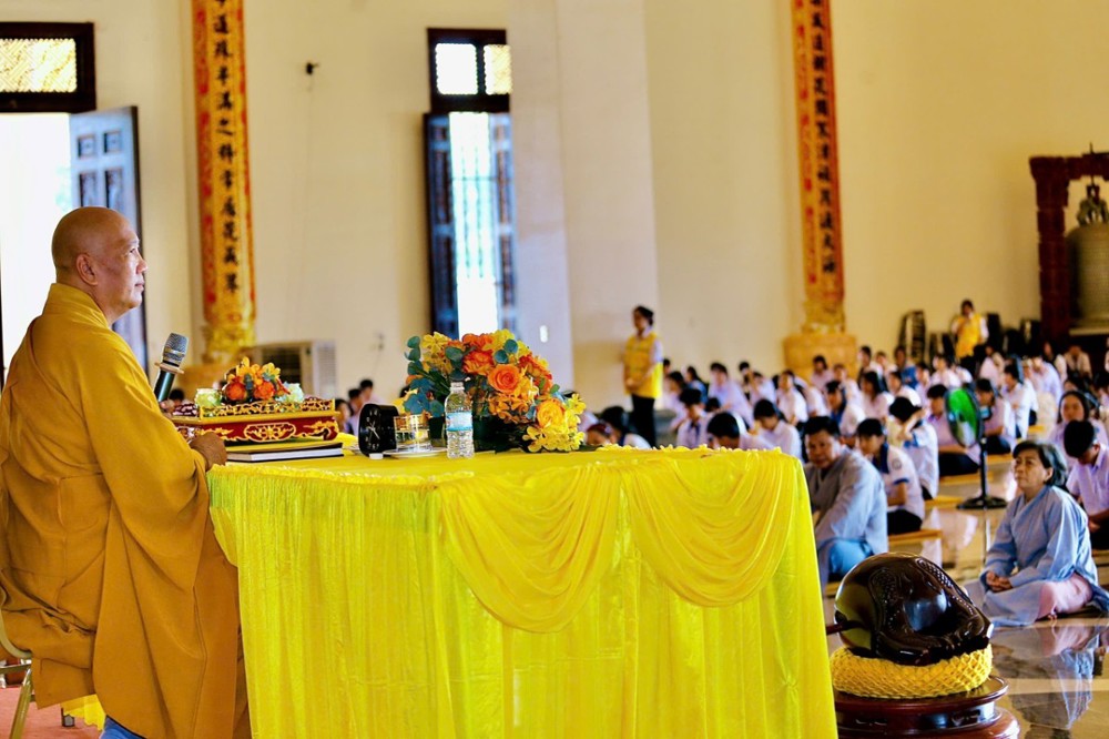 Bằng lời giảng sâu sắc nhưng Thượng toạ đã truyền tải thông điệp bằng những lời giảng sâu sắc trả lời luôn đem lại cuộc sống an lạc giữa đời thường đến với 500 em thanh thiếu niên học sinh và quý vị Phật tử tham dự khóa tu, giúp đại chúng hiểu rằng niềm vui chân thật không đến từ vật chất, mà từ tâm biết đủ, biết yêu thương và biết cho đi. Đạo Phật là con đường giác ngộ do Đức Phật chỉ dạy, mở ra nẻo chánh giúp con người nhận ra sự thật và bản chất vô thường của thế gian. Nhờ đó, mỗi người biết tự chuyển hóa từ suy nghĩ đến lời nói và hành vi, hướng tâm đến điều thiện lành, đem lại an lạc không chỉ cho bản thân mà còn lan tỏa đến mọi người xung quanh, trong hiện tại và cả tương lai. Chính vì vậy, giáo lý Phật Đà có ảnh hưởng sâu rộng đến mọi mặt của đời sống. Người biết ứng dụng lời Phật dạy vào việc học, việc làm sẽ có được sự an tịnh trong tâm hồn, gia đình hạnh phúc, xã hội yên vui, đất nước thái bình, muôn loài đều hạnh phúc và an lạc.