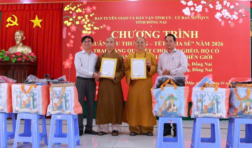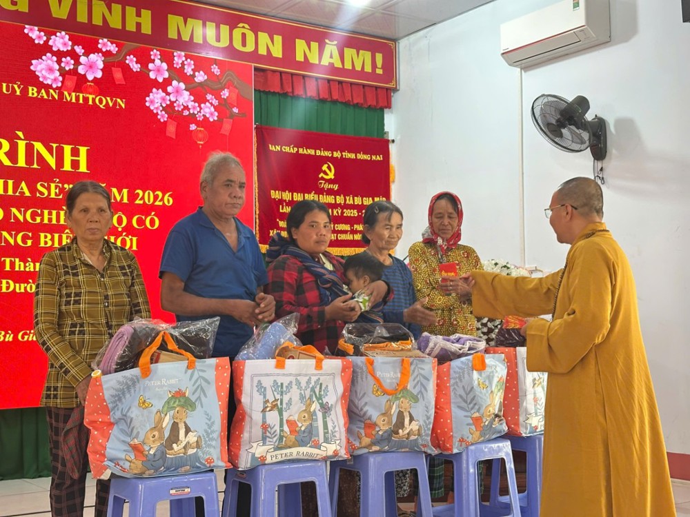 PSO - Trong tinh thần từ bi cứu khổ, sẻ chia cùng đồng bào vùng biên giới còn nhiều khó khăn, ngày 28/01/2026 (nhằm ngày 10/12 năm Ất Tỵ), chùa Phước An (xã Long Thành) đã tổ chức chương trình trao tặng 300 phần quà cho các hộ dân có hoàn cảnh khó khăn trên địa bàn xã Bù Gia Mập. Chương trình không chỉ mang ý nghĩa hỗ trợ vật chất thiết thực mà còn lan tỏa sâu rộng tinh thần nhân ái, gắn kết đạo và đời trong đời sống xã hội hôm nay.