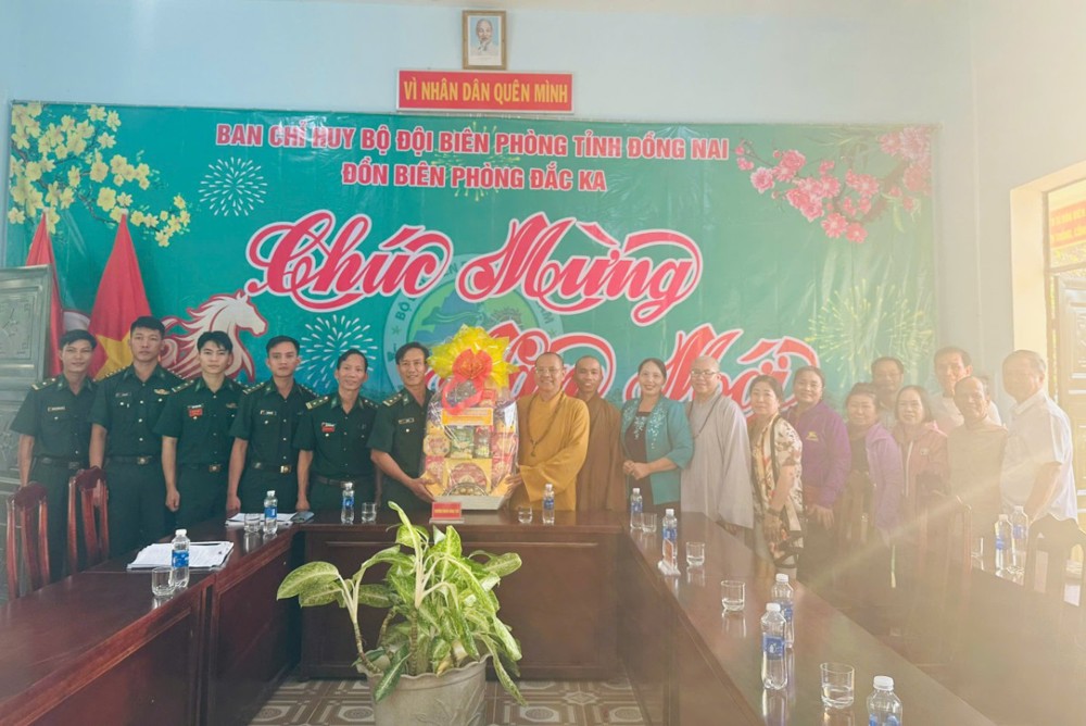 Nhân dịp này, đoàn chư Tôn đức Tăng, Ni chùa Phước An cũng đã đến thăm hỏi, vấn an sức khỏe và trao tặng những phần quà nhỏ đến cán bộ, chiến sĩ tại Đồn Biên phòng Đắk Ka và Đồn Biên phòng Bù Gia Mập.