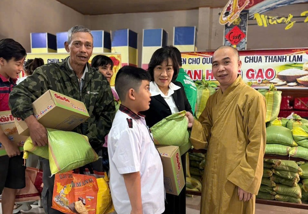 PSO – Sáng ngày 01/02/2026, tại chùa Thanh Lâm (xã Tân Khai, tỉnh Đồng Nai), Sư cô Thích Nữ Tín Lạc – Trụ trì chùa Thanh Lâm đã phối hợp cùng Đảng ủy các cơ quan Đảng tỉnh Đồng Nai và Ủy ban MTTQ Việt Nam xã Tân Khai tổ chức chương trình “Gian hàng 0 đồng”, trao quà Tết đến 200 hộ đồng bào dân tộc thiểu số khó khăn, gia đình chính sách, người cao tuổi và hộ cận nghèo trên địa bàn xã.