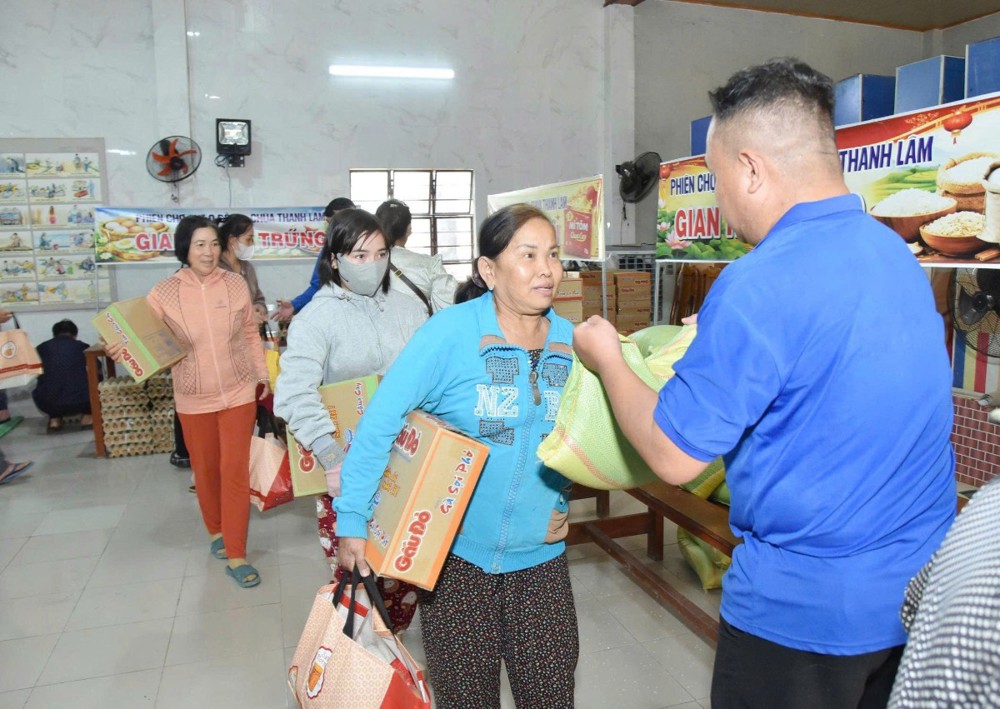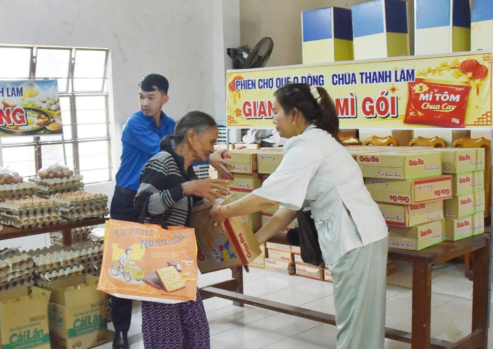 Trong không khí hân hoan những ngày cận Tết, bà con nhân dân đã háo hức tham gia phiên chợ 0 đồng, lựa chọn các mặt hàng theo phiếu được phát, với sự hỗ trợ nhiệt tình của cán bộ địa phương, đoàn viên thanh niên, hội viên các đoàn thể và Phật tử chùa Thanh Lâm, tạo nên khung cảnh rộn ràng, ấm áp nghĩa tình Xuân.