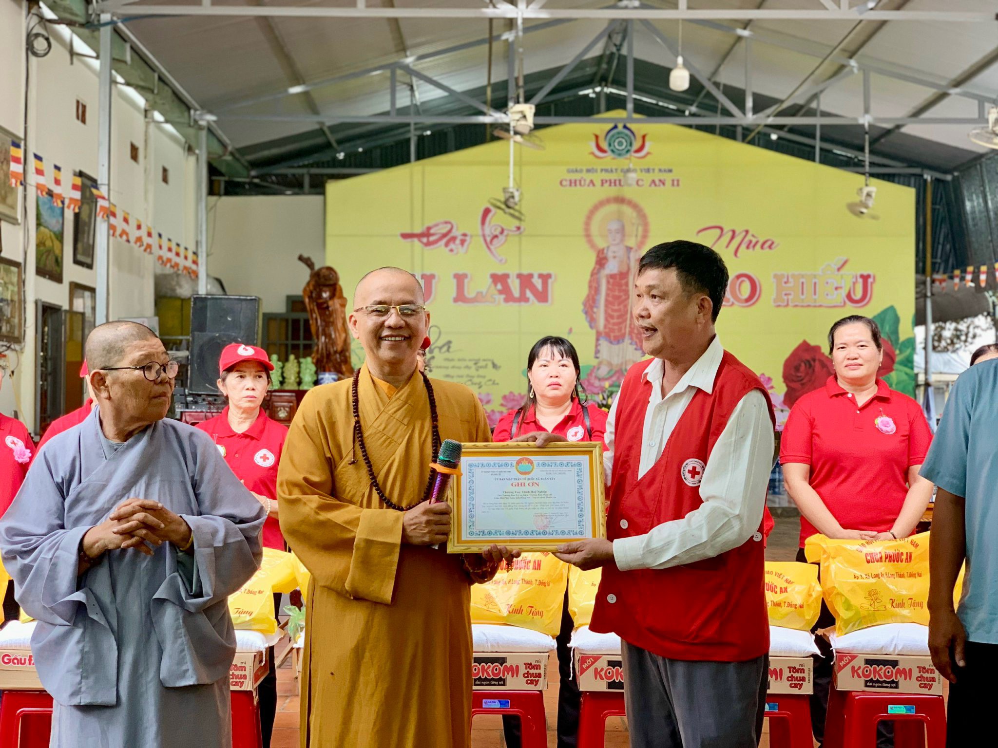 Buổi chiều cùng ngày, chùa Phước An đã trao 5 chiếc xe đạp cùng đồ dùng học tập hỗ trợ học sinh có hoàn cảnh đặc biệt và trao 50 phần quà hỗ trợ bà con có hoàn cảnh khó khăn ở địa phương. Mỗi phần quà trị giá 400 ngàn đồng.