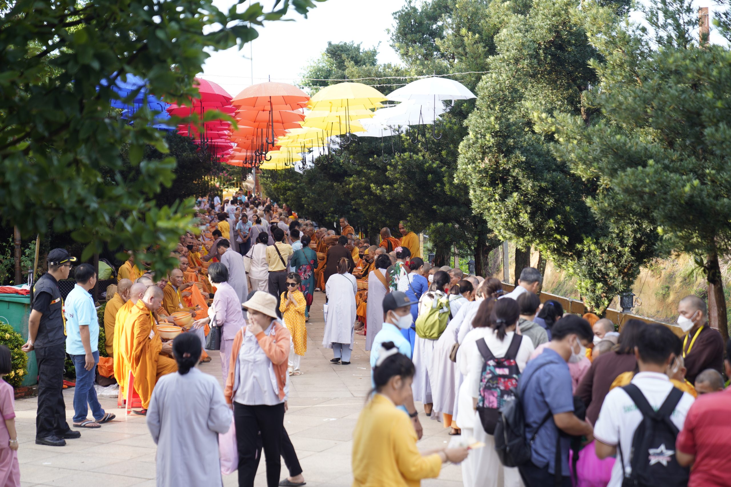 Từ 6h00 sáng tại khuôn viên đồi Phật lớn chùa Long Hương hàng ngàn Phật tử và Tăng, Ni trở về tái hiện hình ảnh cổ Phật khất thực với số lượng 4000 Tăng, Ni không phân biệt tông phái thiền, tịnh độ, nam tông, bắc tông hay khất sĩ.