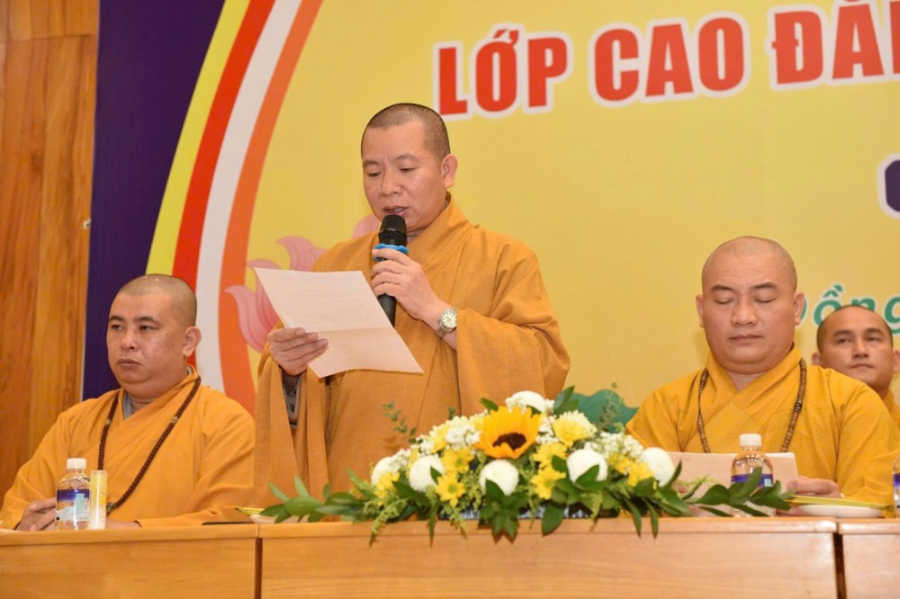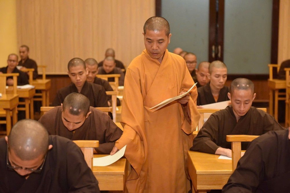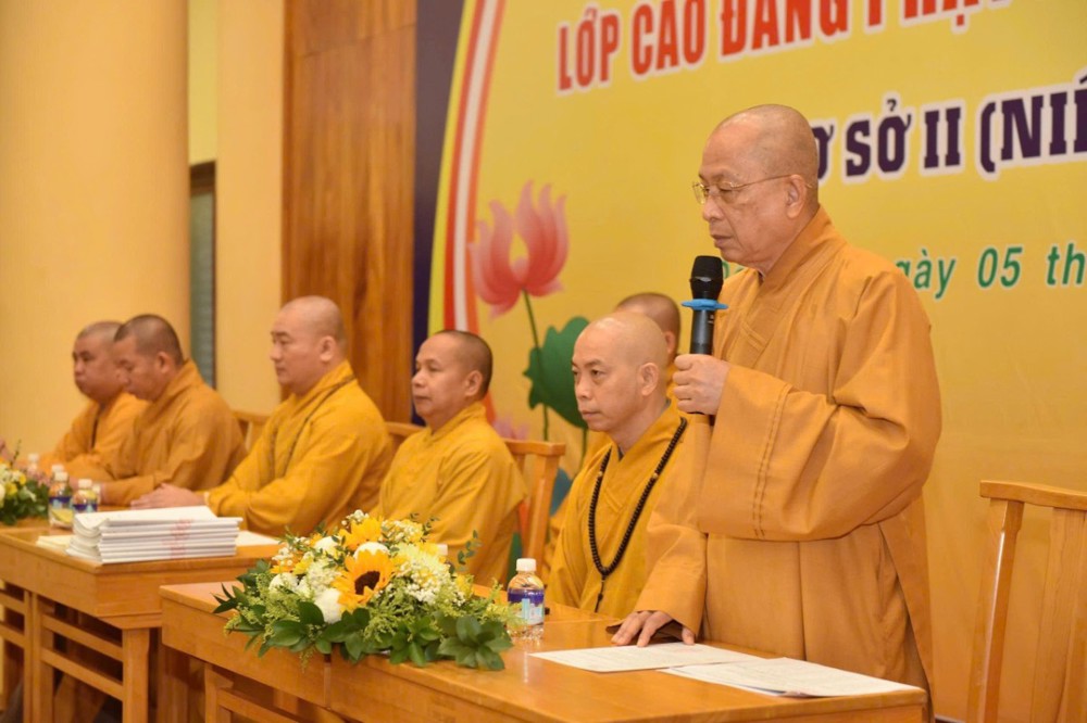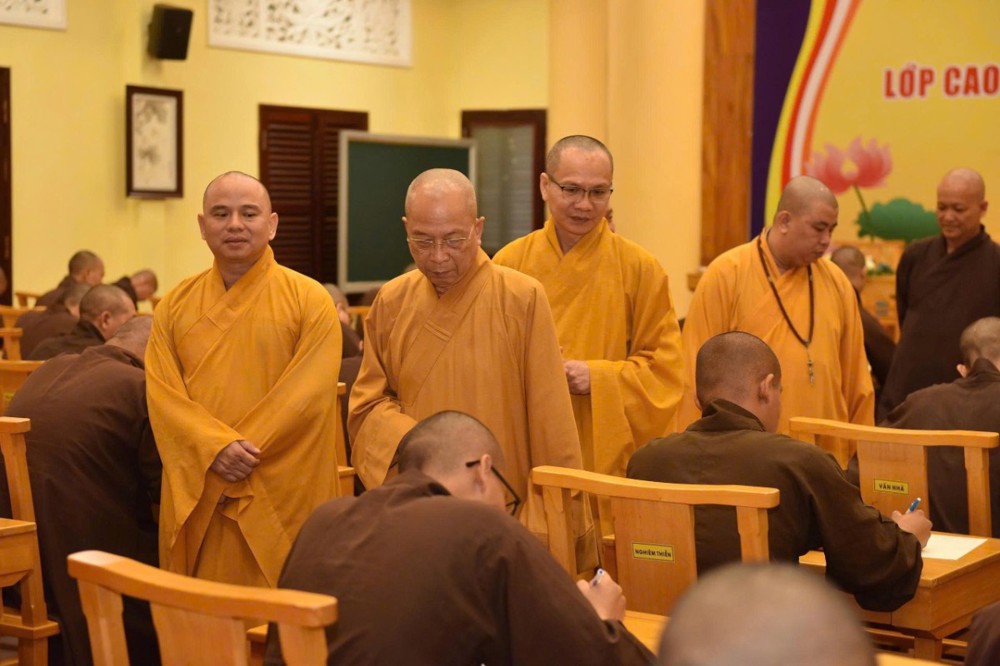 Huấn từ trước Tăng sinh, Hòa thượng Trưởng ban Trị sự, Chủ nhiệm Lớp chia sẻ: “Tôi tin vào khả năng và đức hạnh của quý Tăng sinh dưới sự đào tạo, hướng dẫn của Hòa thượng cũng như quý thầy Ban Chức sự tại bổn trường. Mong rằng các vị sẽ nghiêm túc và tôn trọng quy chế thi và đạt kết quả tốt...”