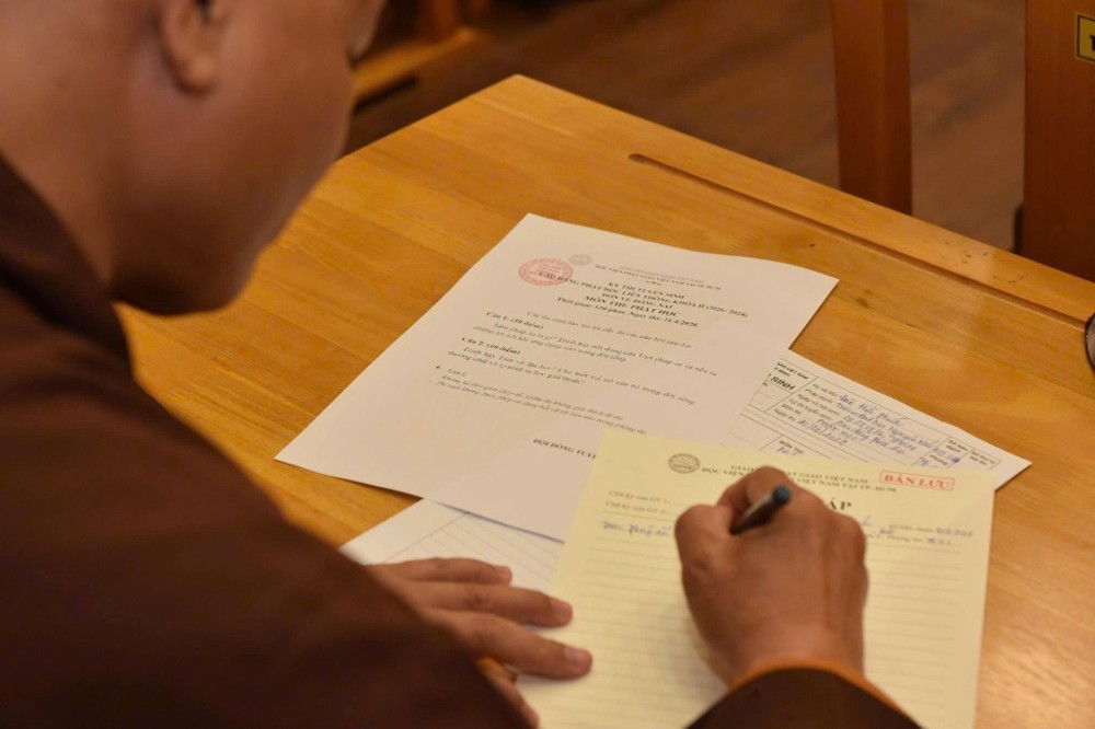 Đại diện Học viện Phật giáo Việt Nam có TT. Thích Quang Thạnh, Uỷ viên HĐTS, Phó Viện trưởng, Tổng thư ký Hội đồng Điều hành Học viện; TT. Thích Lệ Ngôn, Thành viên Hội đồng Điều hành, Trưởng Phòng Đào tạo Học viện; ĐĐ. Thích Giác Thọ, Thành viên Hội đồng Điều hành, Chánh Văn phòng Học viện, cùng chư Tôn đức trong Ban Giáo thọ, Ban Giám thị, Ban Chức sự Lớp Cao đẳng Phật học liên thông và các Tăng sinh tham gia kỳ thi.