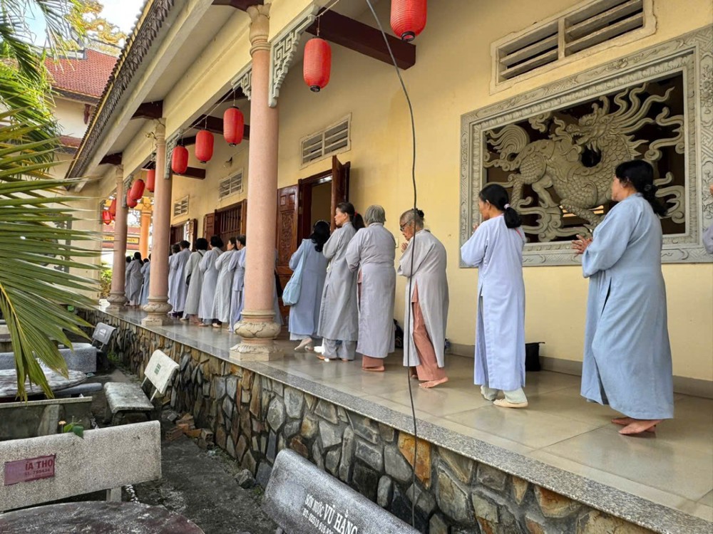 Sau thời pháp thoại đầy ý nghĩa, đại chúng tiếp tục hành trì pháp môn Tịnh Độ, nhiếp tâm niệm Phật và thực tập thiền tọa vào buổi chiều. Tiếng chuông, tiếng mõ ngân vang hòa quyện cùng năng lượng tu tập của đại chúng, tạo nên một không gian thanh tịnh, bình yên và tràn đầy hỷ lạc.