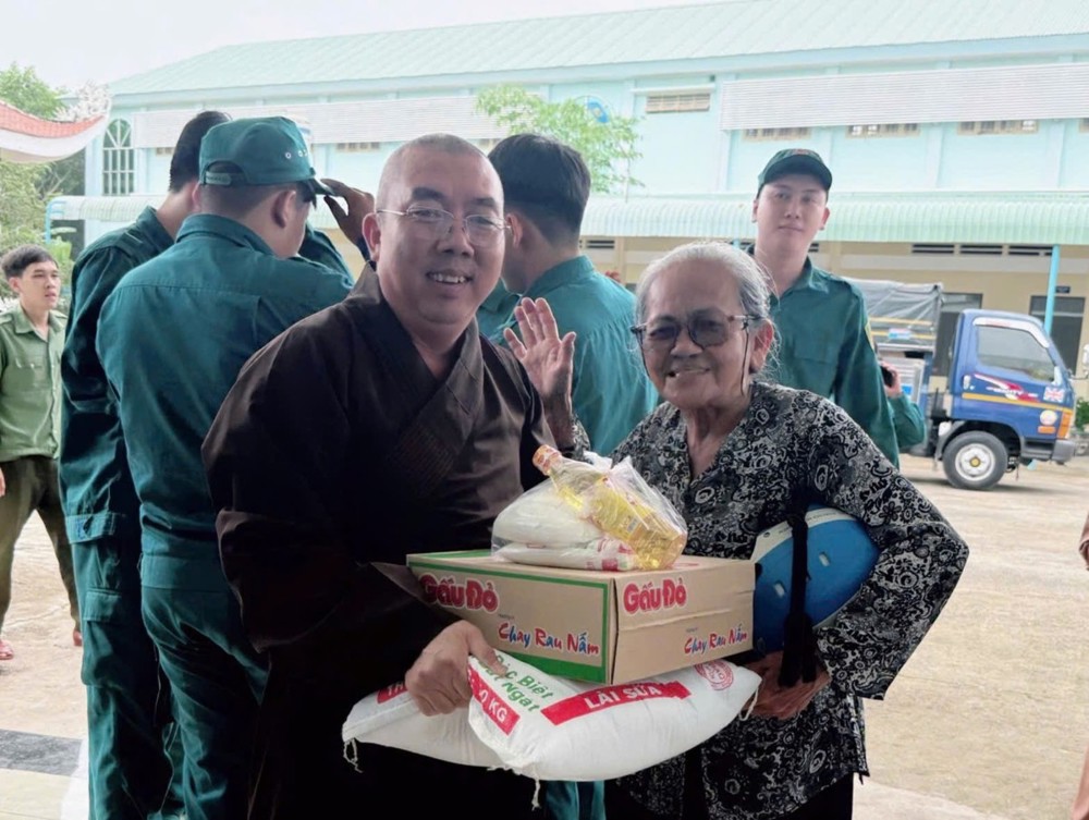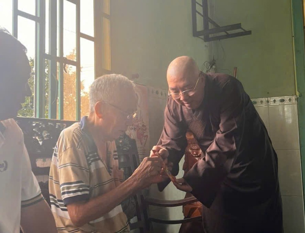 Bên cạnh đó, Thầy còn nhận hỗ trợ thường xuyên cho cụ Lâm Thành An (91 tuổi, khu phố Bình Thạch, phường Tân Triều) – người già neo đơn khó khăn trong đi lại. Phật tử Chiêm Thị Hoa (gia đình chú Sáu Phụng, định cư tại Úc) đã phát tâm tài trợ 20kg gạo và 1,5 triệu đồng, được Thầy trực tiếp trao tận tay. Những nghĩa cử ấy như sợi dây nối dài lòng nhân ái, khiến đạo và đời hòa quyện trong tinh thần từ bi nhập thế.