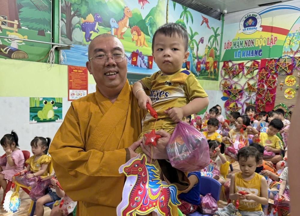 Không chỉ dừng lại ở niềm vui trẻ thơ, trong khi các tỉnh miền Trung – miền Bắc gánh chịu liên tiếp các cơn bão số 8 đến 11, Thượng tọa đã phát động quyên góp và gửi 10 triệu đồng ủng hộ Ủy ban MTTQVN phường Tân Triều để hỗ trợ các em nhỏ vùng bão sau thiên tai. Những phần quà tuy giản dị, nhưng chất chứa tinh thần từ bi vô lượng.