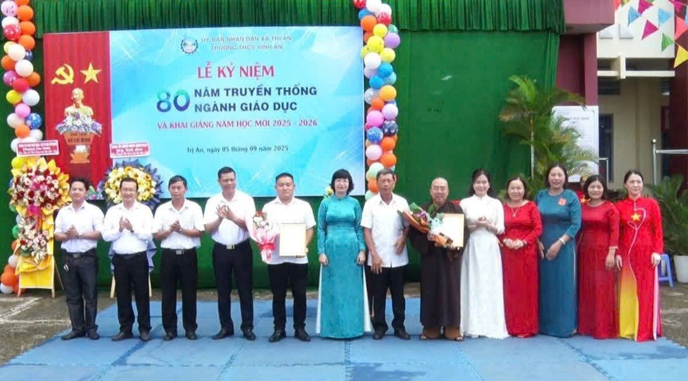 Tiếp nối tinh thần ấy, sáng 5/9, nhân lễ khai giảng năm học mới, Thượng tọa tặng thêm 6.000 quyển tập cho học sinh tại 8 trường học của xã Trị An, giúp các em có thêm điều kiện học tập. Đại diện chính quyền xã đã gửi lời cảm ơn và ghi nhận tấm lòng “vừa thiện vừa trí” của vị trụ trì chùa Phổ Quang.
