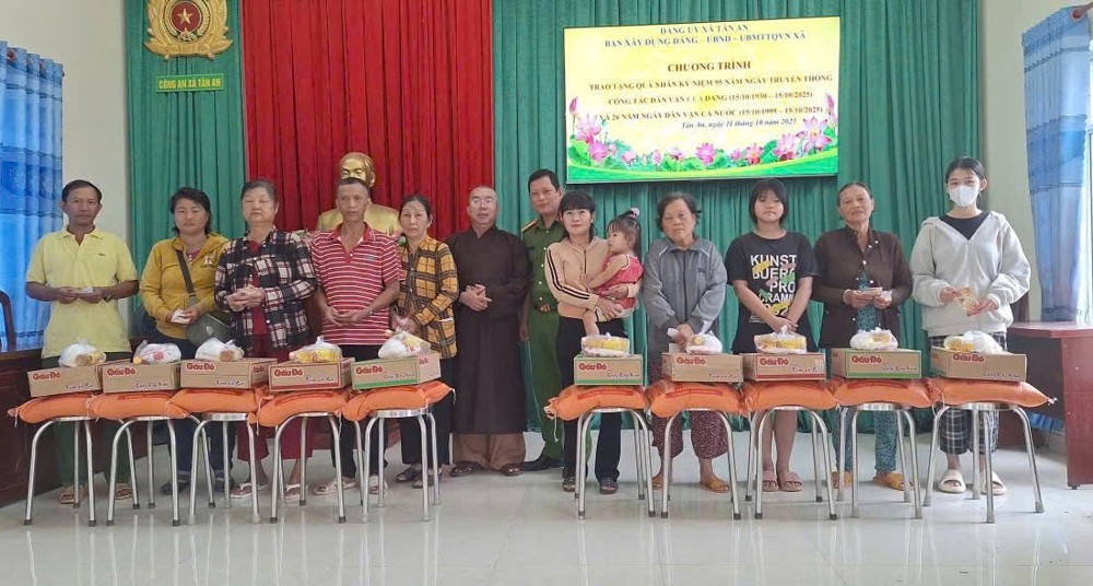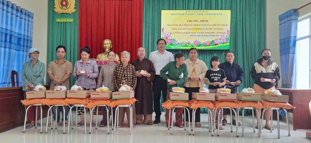 Ngày 11/10/2025, nhân kỷ niệm 95 năm Ngày truyền thống công tác Dân vận, Thượng tọa cùng Phật tử chùa Phổ Quang đã đến xã Tân An trao 200 phần quà cho hộ nghèo. Mỗi phần gồm 10kg gạo, 1 thùng mì, 1 chai dầu ăn, nửa ký đường, 1 bịch bột ngọt và 1 bao thư 100 ngàn đồng.