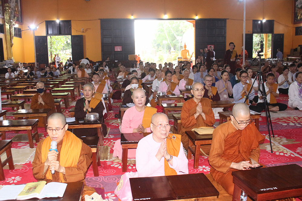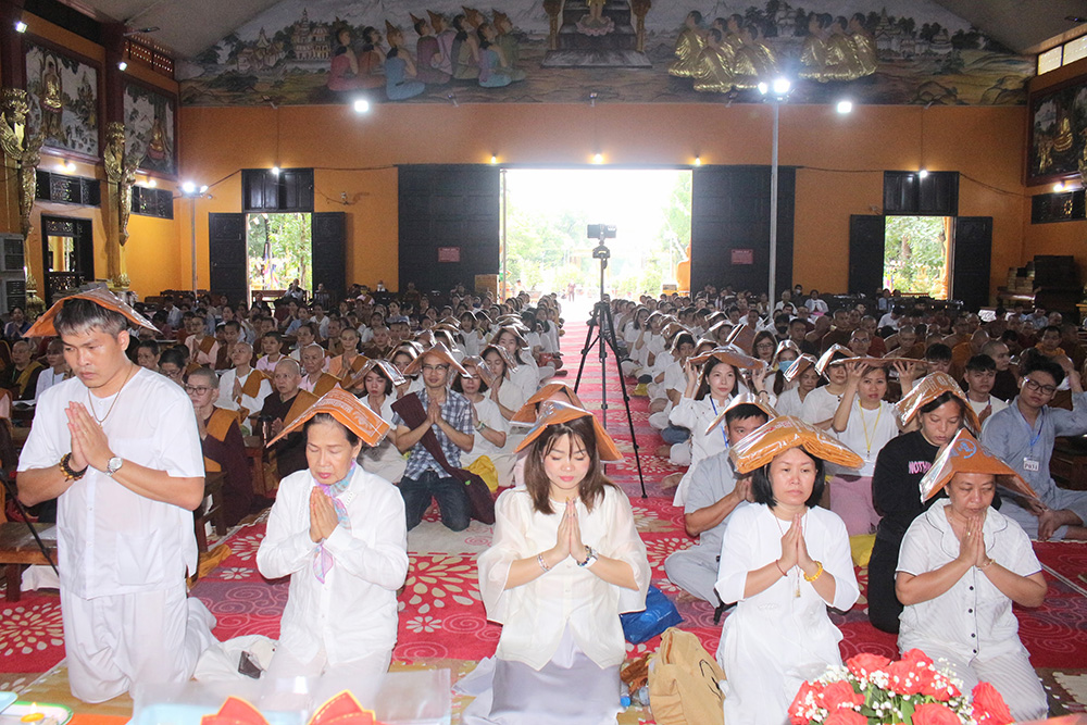 Mở đầu buổi lễ là khai Kinh Tam Bảo, chư Phật tử xin ngũ giới (năm giới) và bát quan trai giới (8 giới) và sau đó là ngồi thiền.