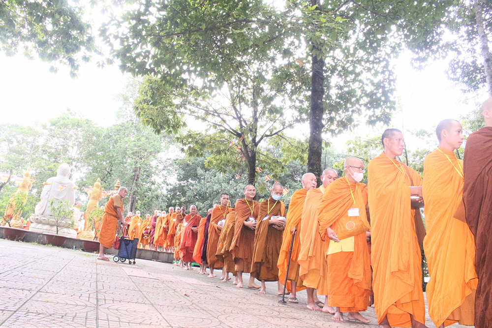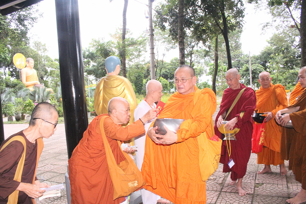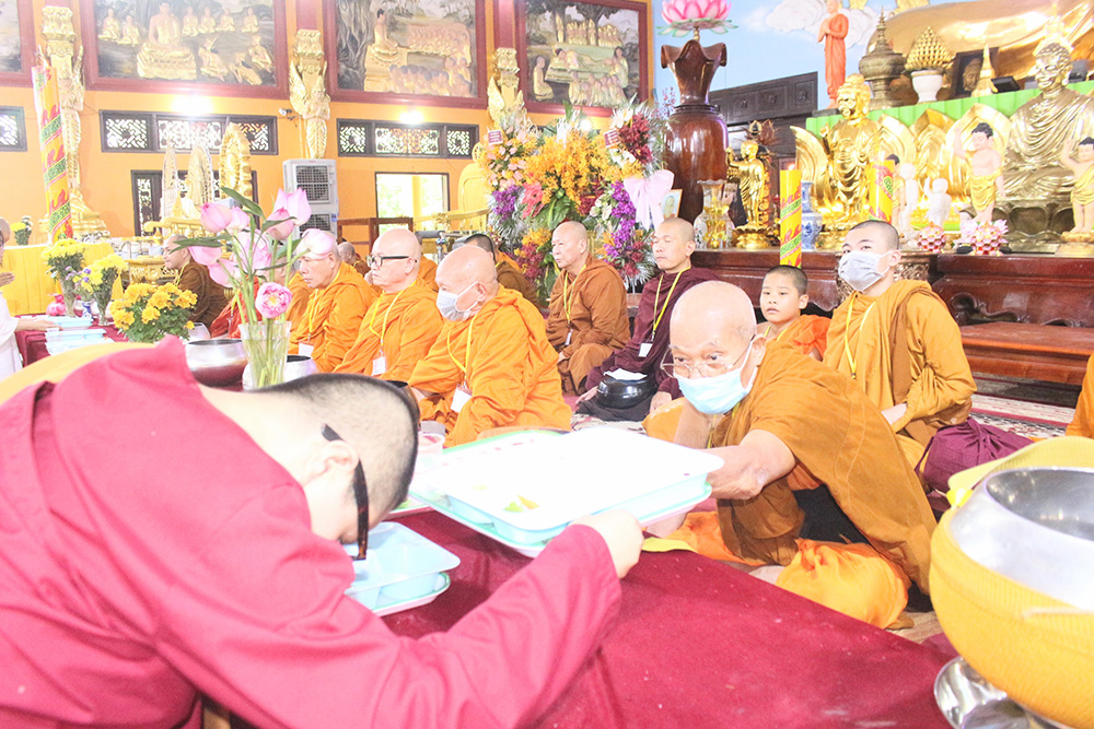 Lễ dâng y tắm mưa chấm dứt lúc 11g00 cùng ngày ấm tình đạo vị sau khi chư Tăng bát hội quanh bổn tự.