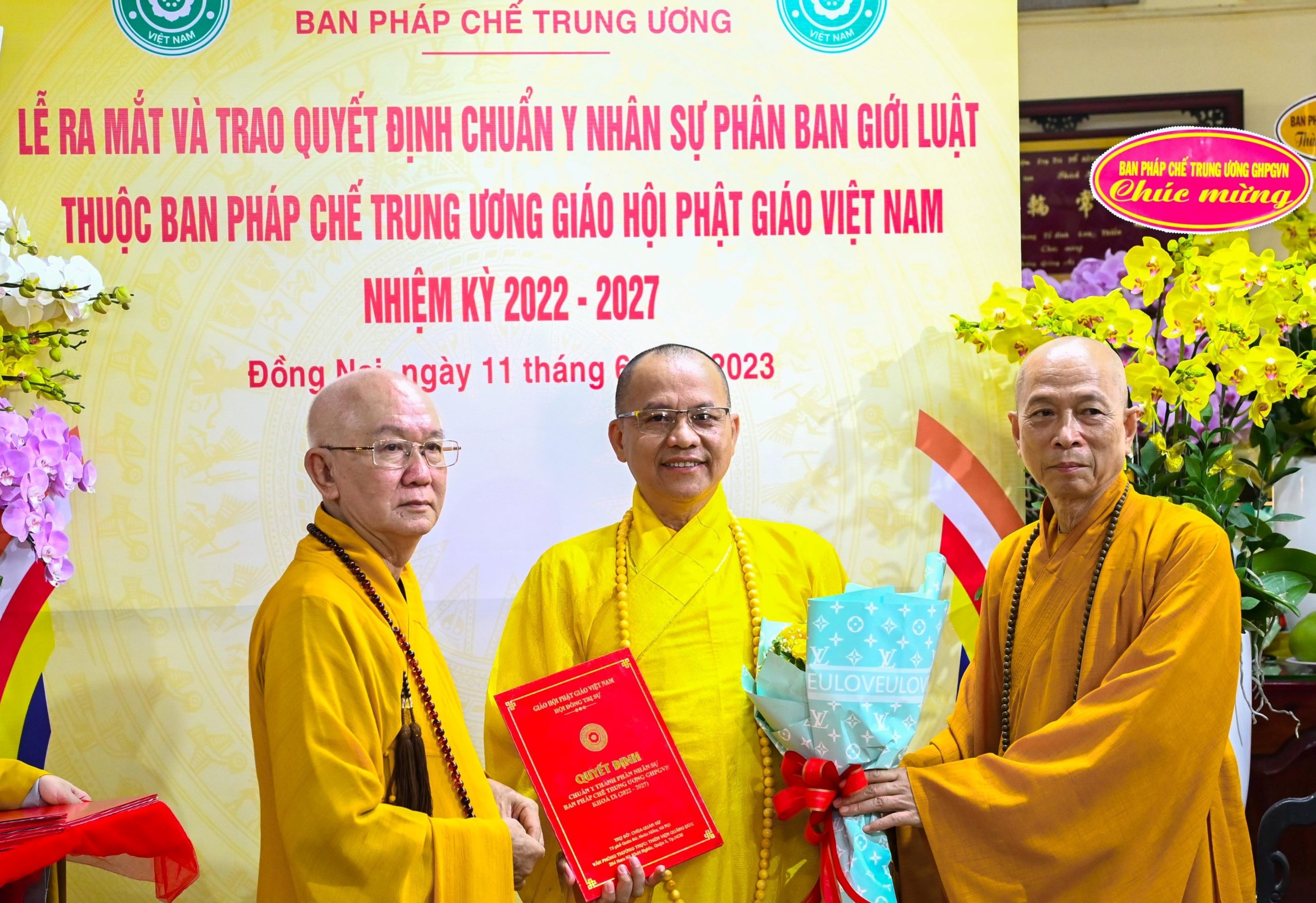 PSO - Sáng ngày 11/06/2023 (nhằm ngày 24/04/ Quý Mão), tại Tổ đình Long Thiền (TP. Biên Hòa, tỉnh Đồng Nai) Ban Pháp chế TƯ GHPGVN long trọng tổ chức Lễ ra mắt và trao Quyết định chuẩn y nhân sự Phân ban Giới luật, thuộc Ban Pháp chế TƯ GHPGVN khóa IX, nhiệm kỳ 2022 – 2027.