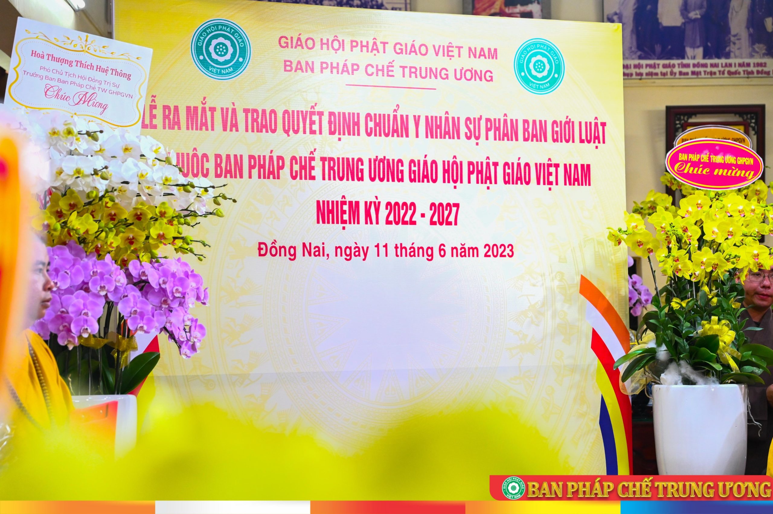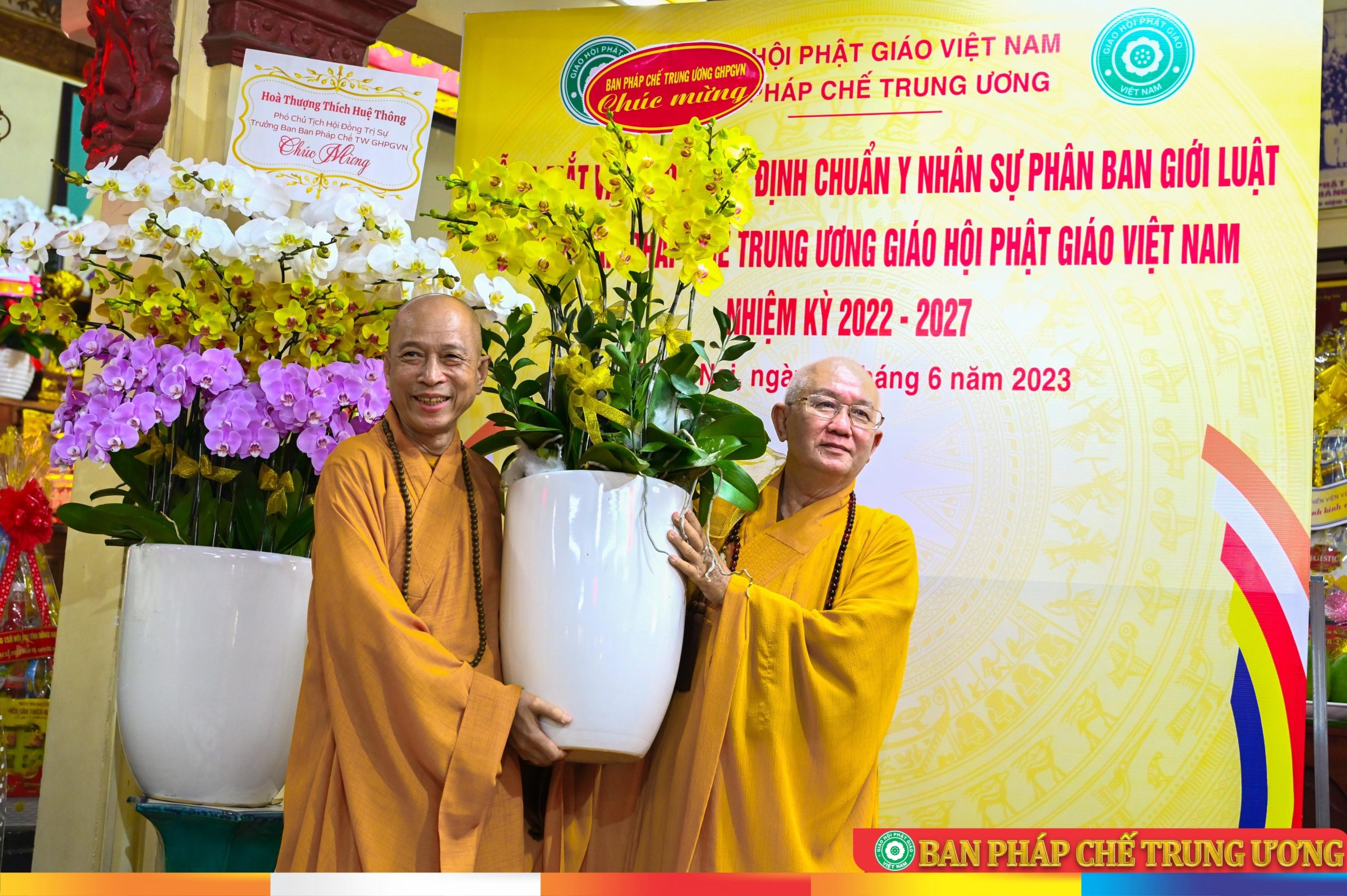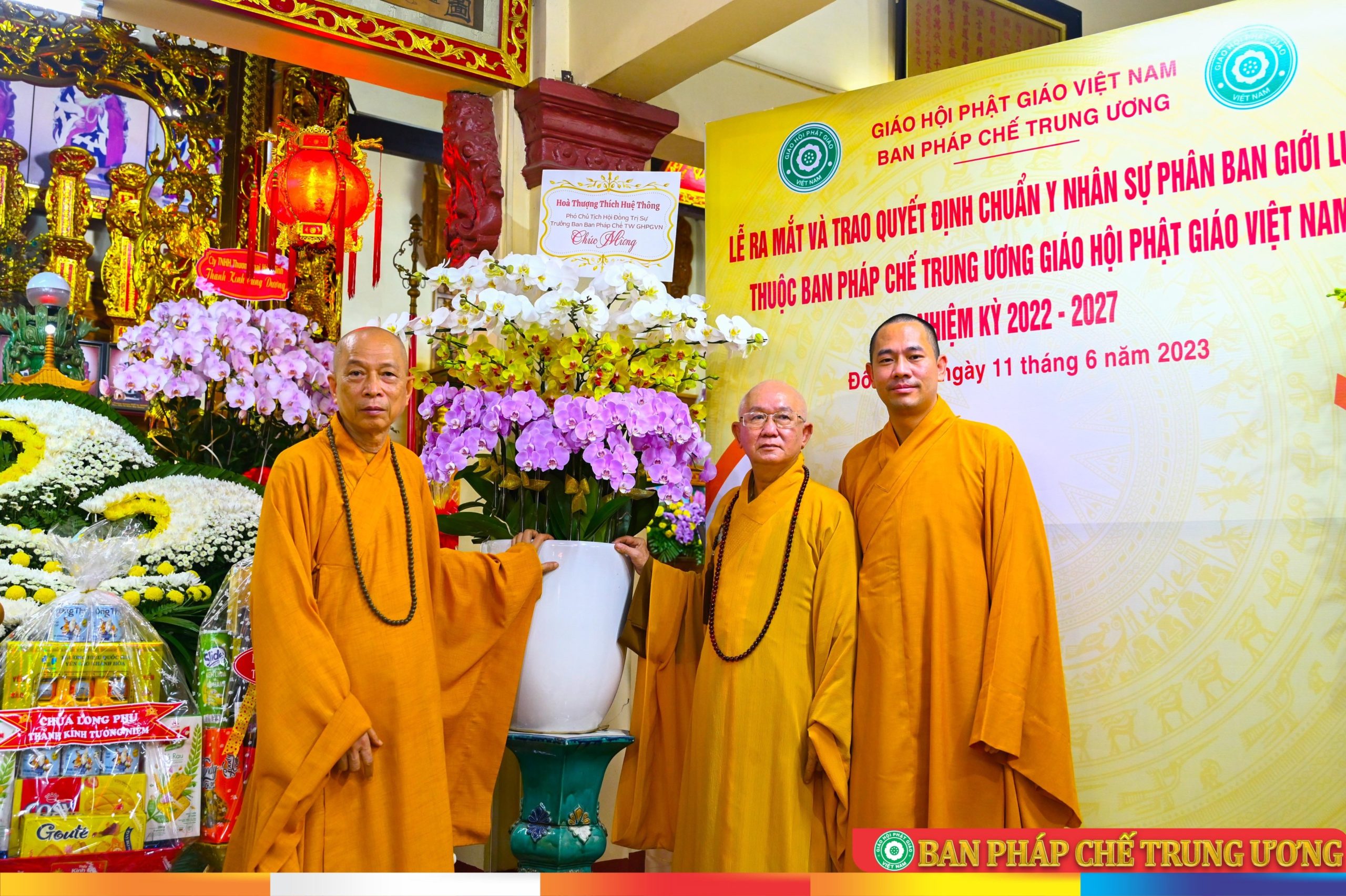 Tại buổi lễ, BTC vinh dự đón nhận hoa lan tươi thắm từ HT. Thích Huệ Thông - Phó Chủ tịch HĐTS, Trưởng ban Pháp chế TƯ và Ban Pháp chế TƯ gửi đến chúc mừng.