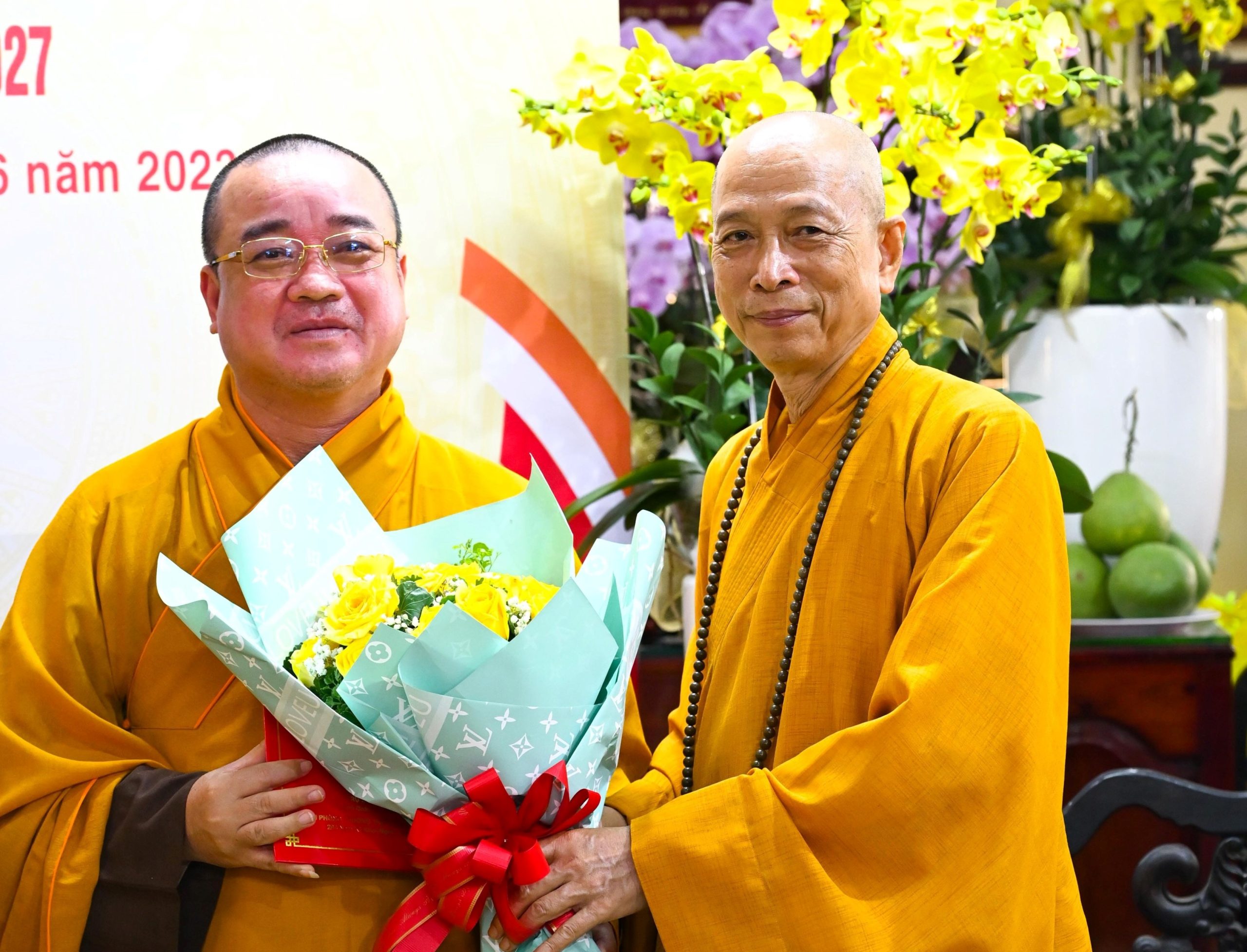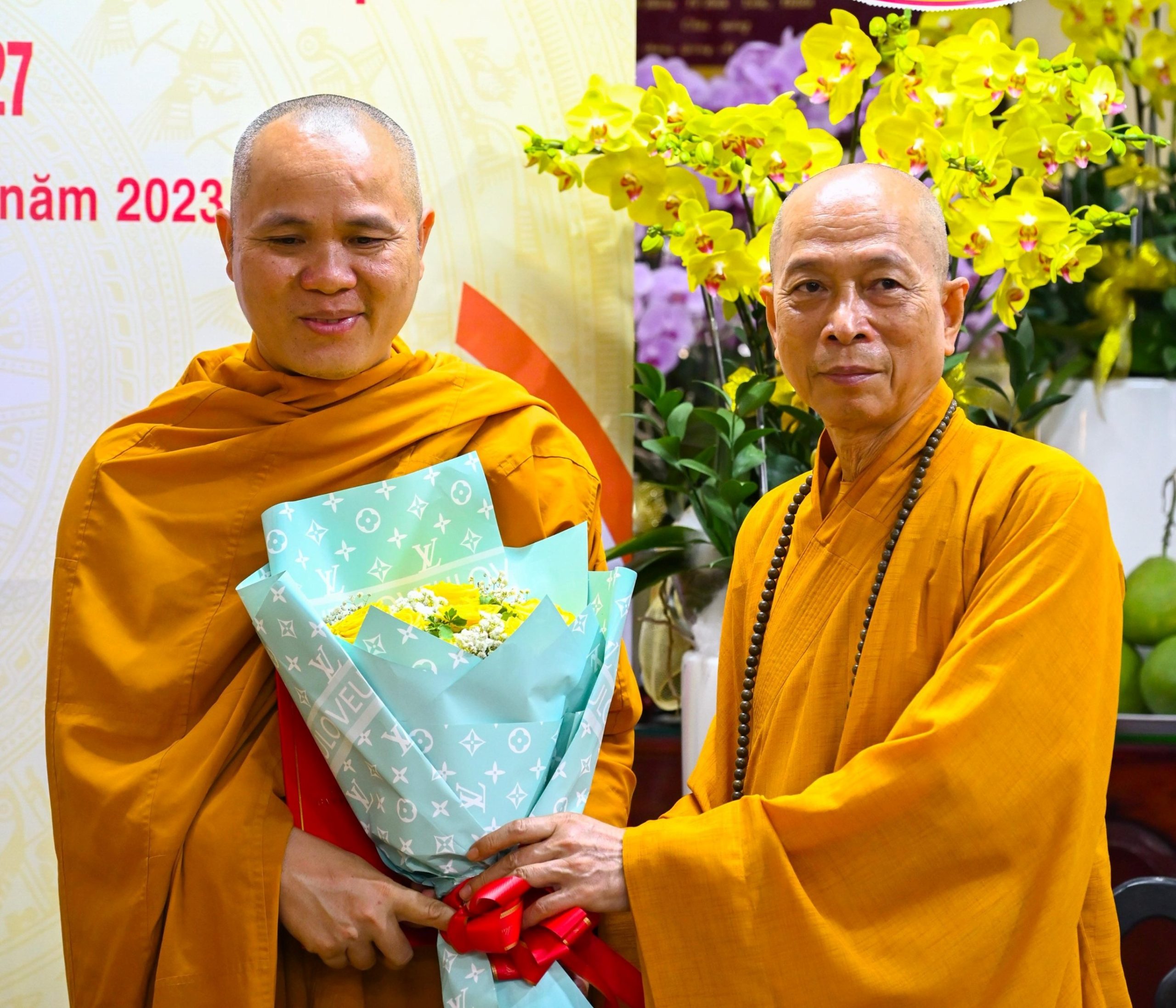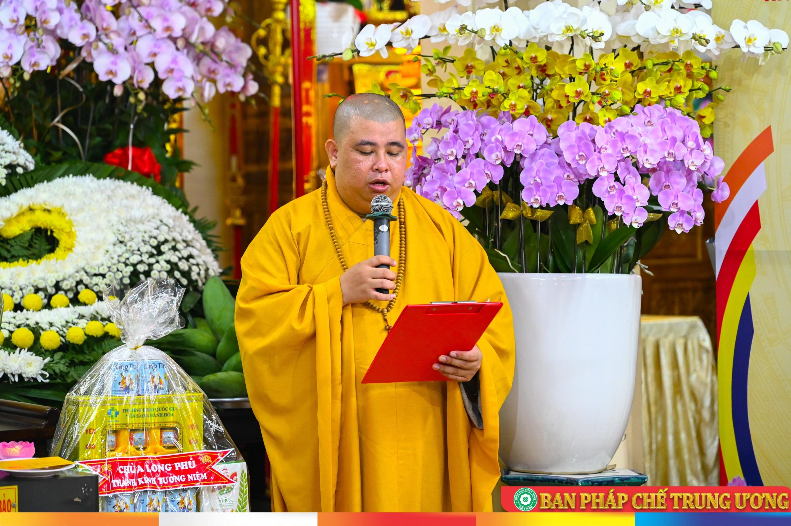 Tại buổi lễ, BTC vinh dự đón nhận hoa lan tươi thắm từ HT. Thích Huệ Thông - Phó Chủ tịch HĐTS, Trưởng ban Pháp chế TƯ và Ban Pháp chế TƯ gửi đến chúc mừng.