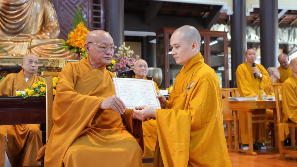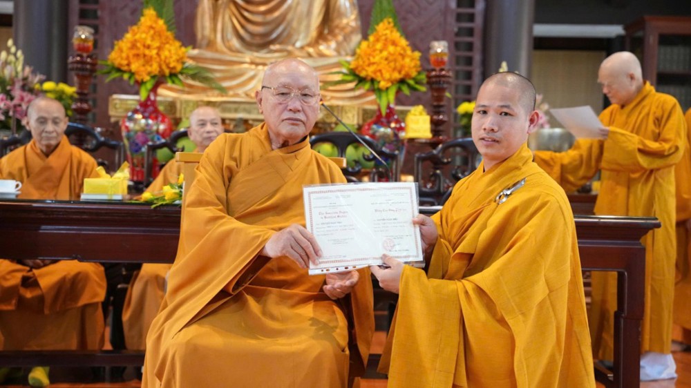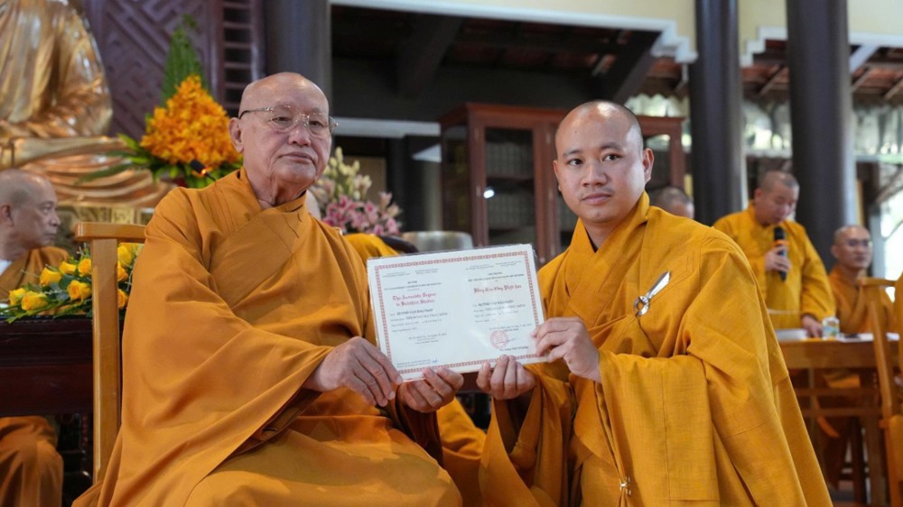 PSO - Chiều ngày 8/12/2025, chư Tôn đức Ban Giám hiệu Trường TCPH tỉnh Đồng Nai và chư Tôn Ban Quản trị Thiền phái Trúc Lâm Việt Nam đã chứng dự Lễ trao bằng Tốt nghiệp cho các Tăng Ni sinh hoàn thành chương trình Cao đẳng Liên thông tại Hội trường Thiền viện Trúc Lâm Trí Đức.