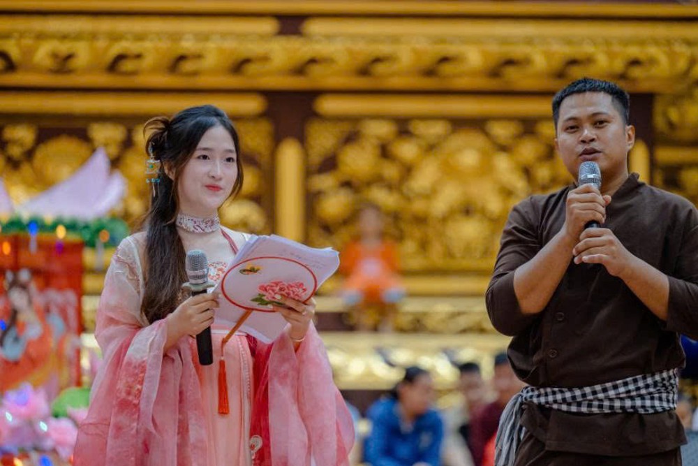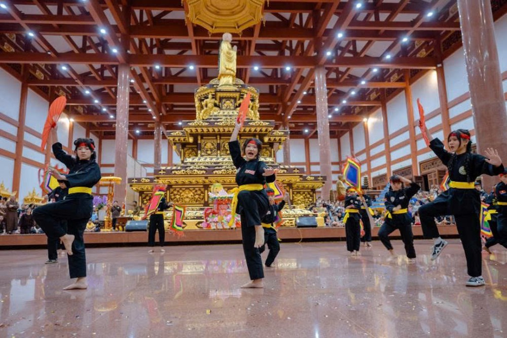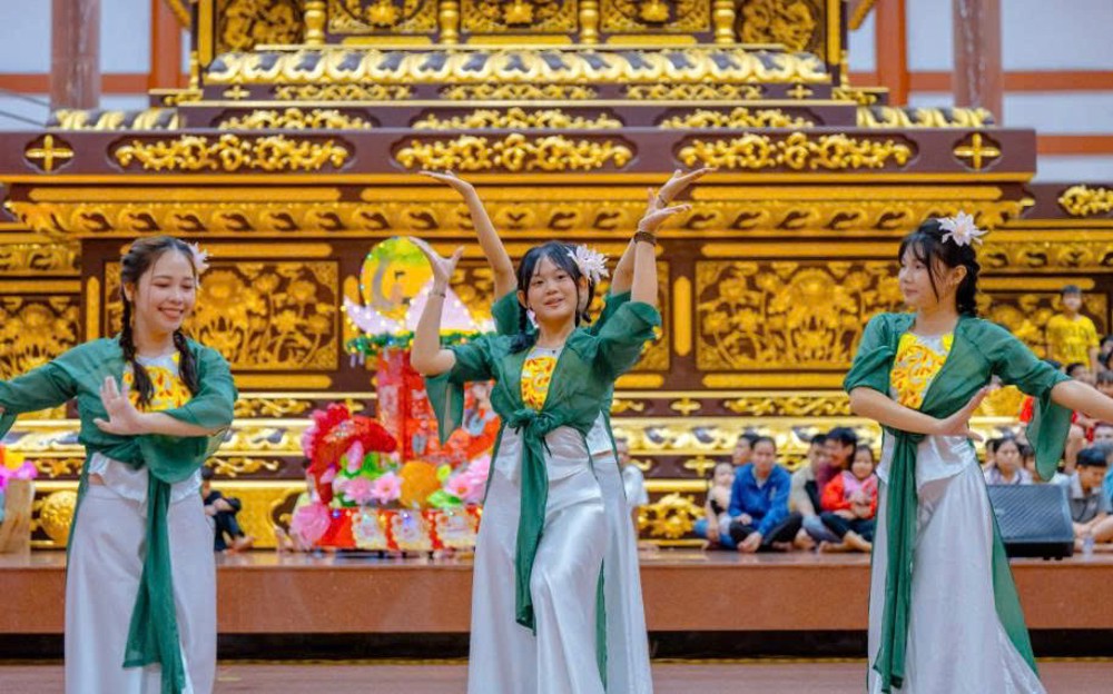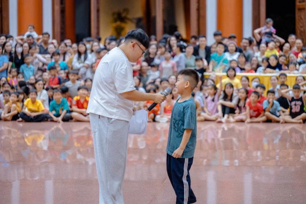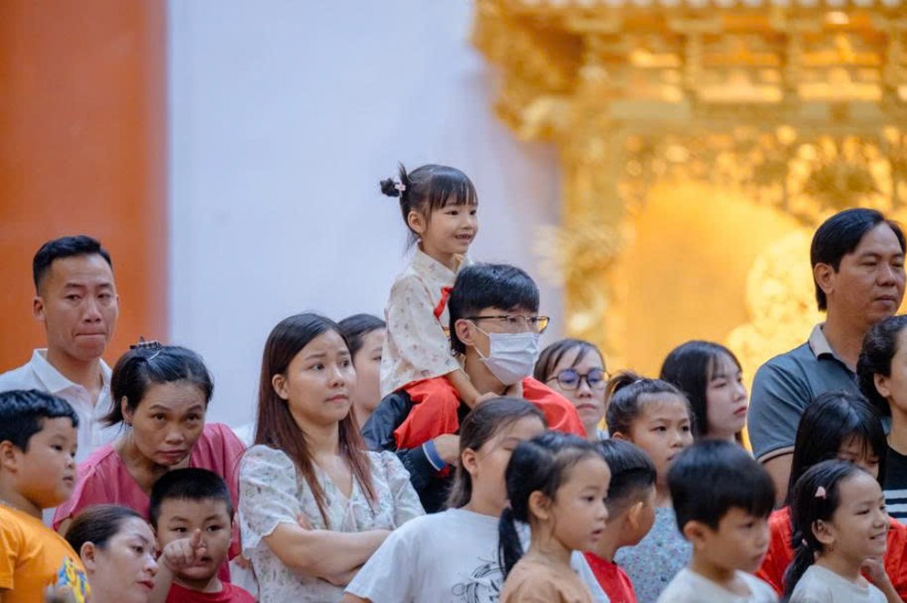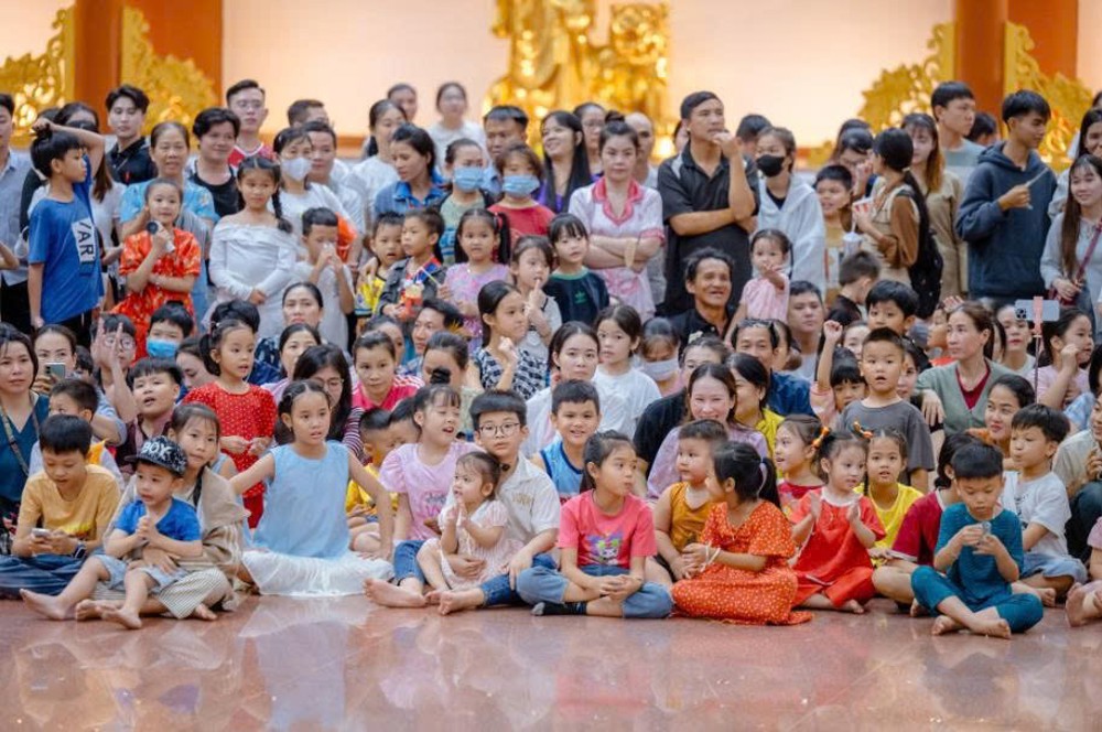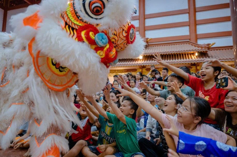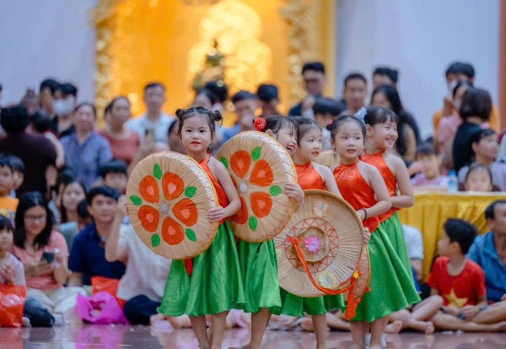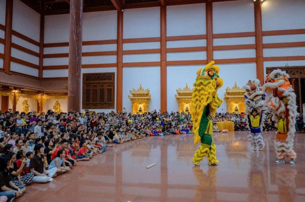 Không khí chương trình thêm rộn ràng với 8 tiết mục văn nghệ đến từ học sinh các trường trên địa bàn, xen lẫn màn múa võ cổ truyền và phần hoạt náo chị Hằng – chú Cuội với nhiều trò chơi, đố vui hấp dẫn. Khi ánh trăng dần lên cao, các em cùng nhau rước đèn quanh sân chùa, tay cầm lồng đèn tỏa sáng, nụ cười hồn nhiên hòa cùng tiếng trống, tiếng reo vui của tuổi thơ.