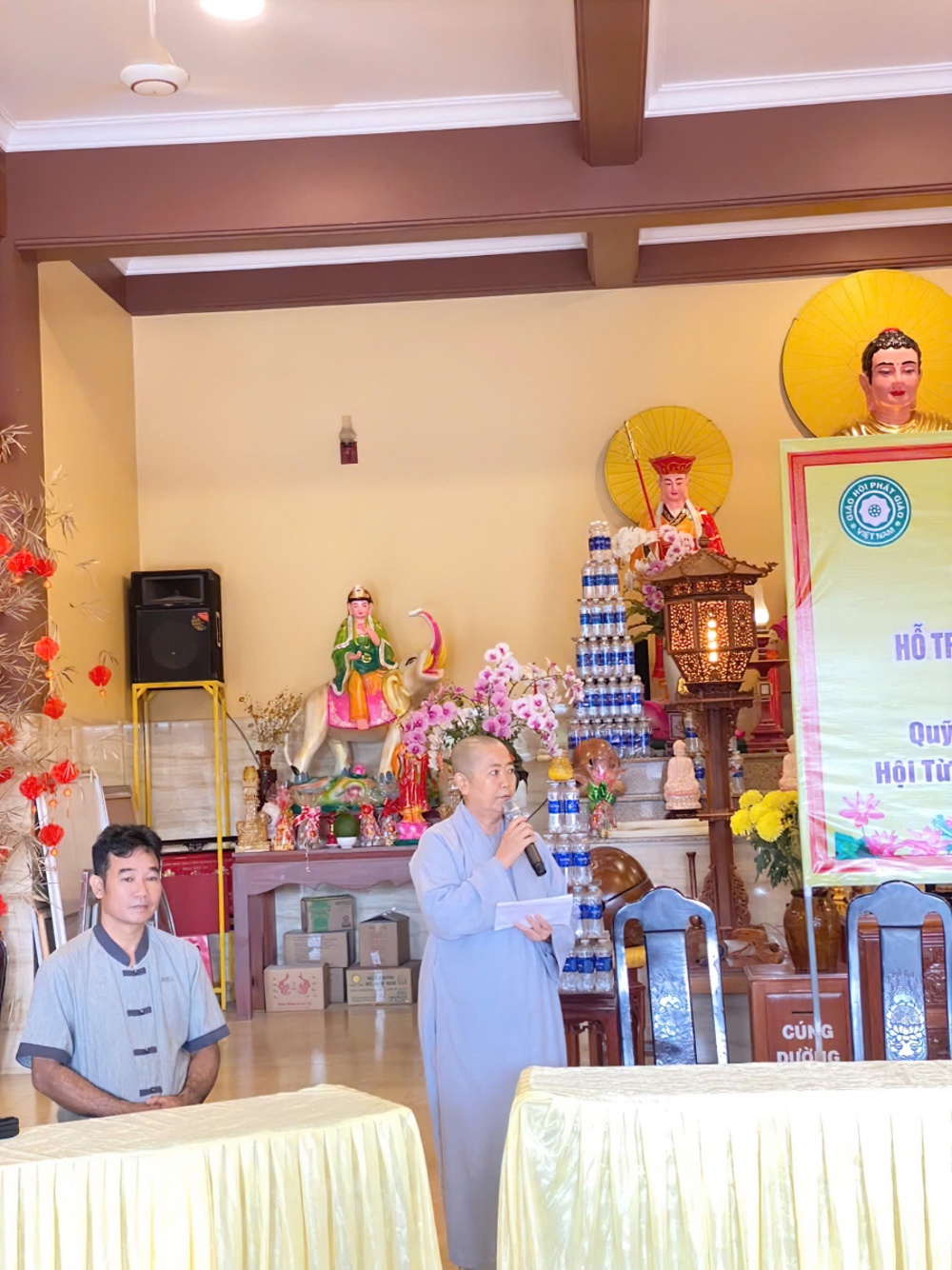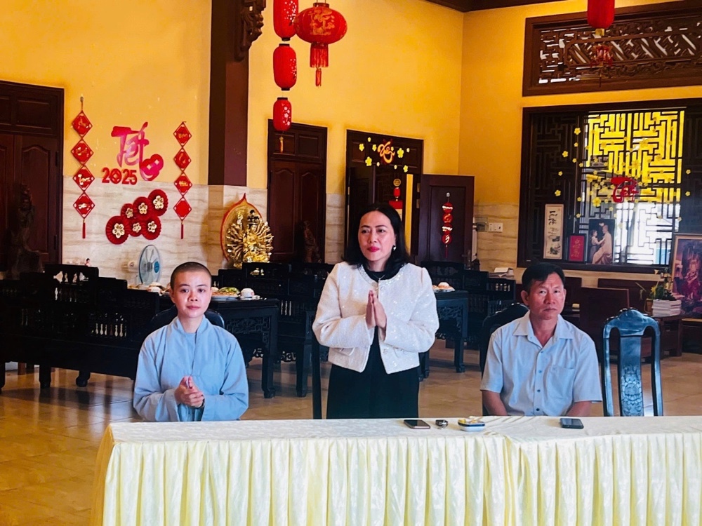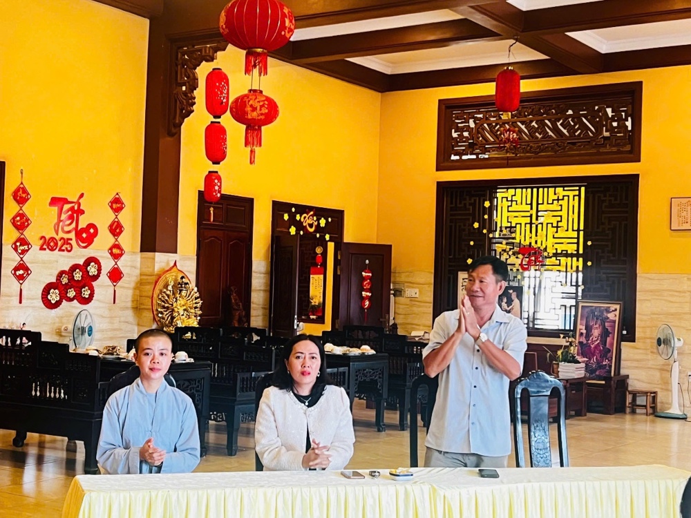 Đón tiếp đoàn tại địa phương có Ni sư Thích Nữ Lệ Thành, Ủy viên Ban Trị sự tỉnh Đồng Nai, Trụ trì chùa Phổ Quang.
